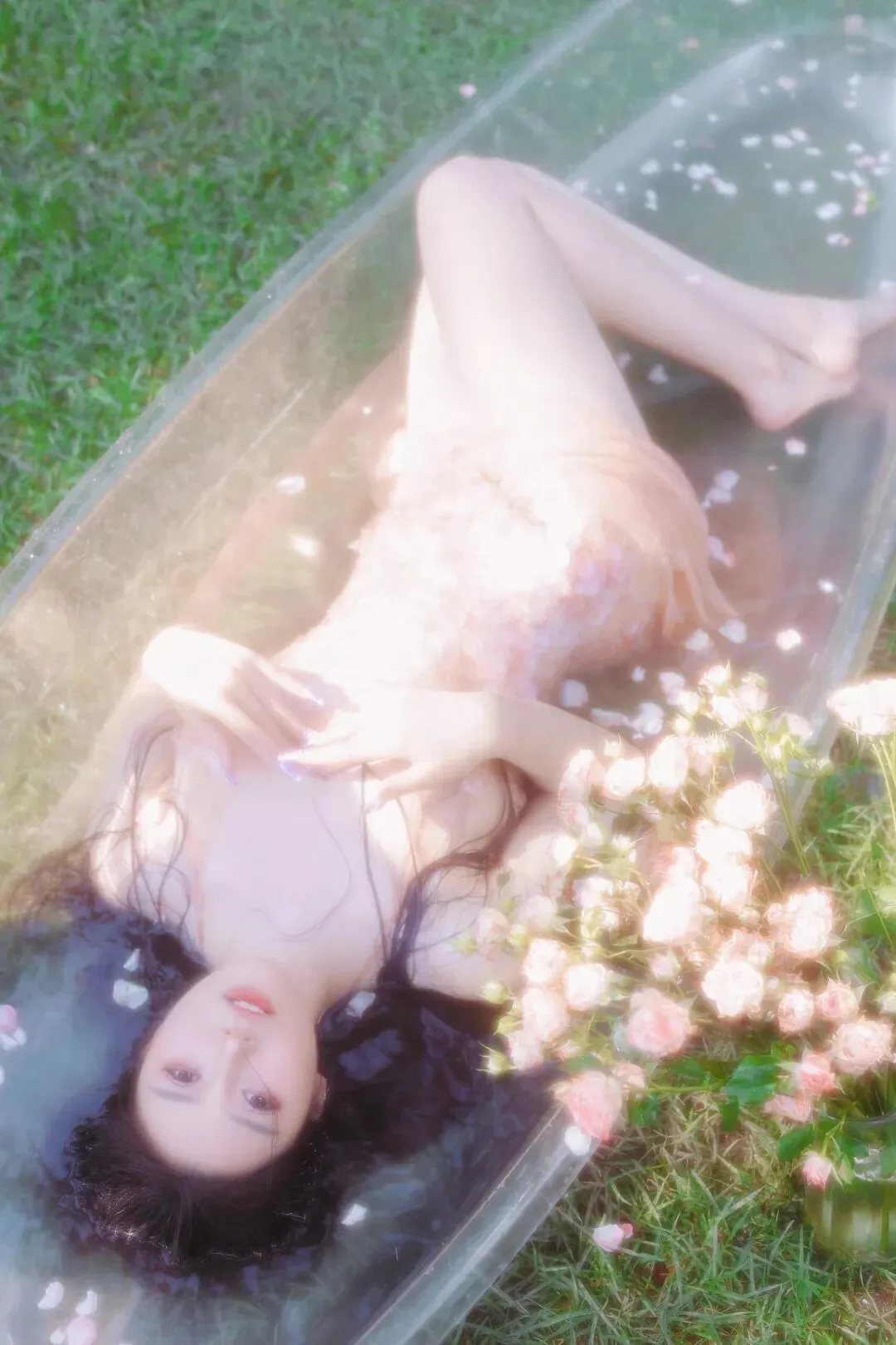 美女摄影写真|春日限定浪漫,在草坪上邂逅人鱼小姐.