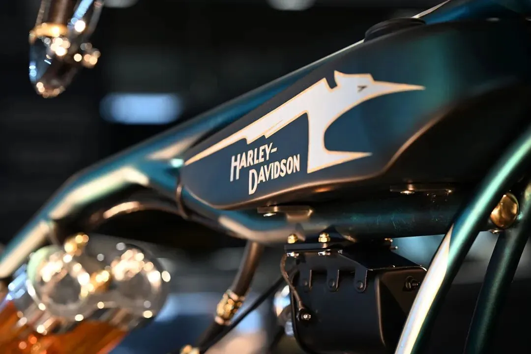 既然发动机是主角,传动系统自然不能拉胯。整车采用WL变速箱与初级传动结构,在保留哈雷传统耐久性的同时,通过定制链条与皮带轮系统完成匹配。这种思路很聪明——外观维持1930年代气质,可靠性却借鉴战后技术。透明机油壶、外露离合与链条结构,机械之美毫无遮掩,连气门的每一次跳动都清晰可见。