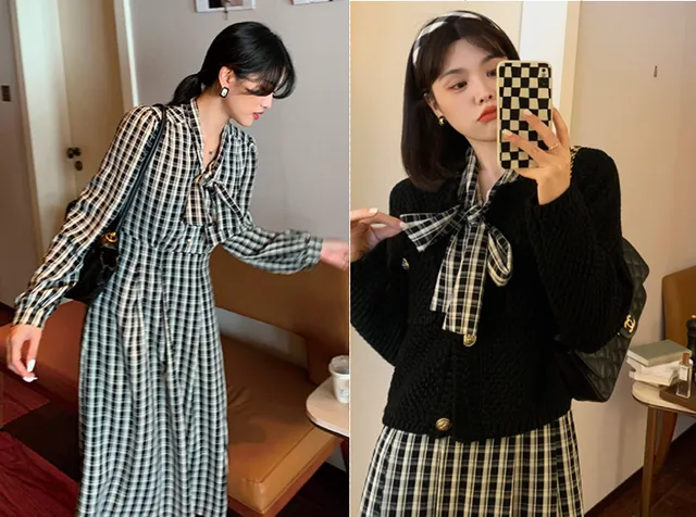 优雅且小清新风格的裙子,黑白格子相间,在蝴蝶结的装饰下,显得特别唯美,刚好适合二十出头的MM哦。