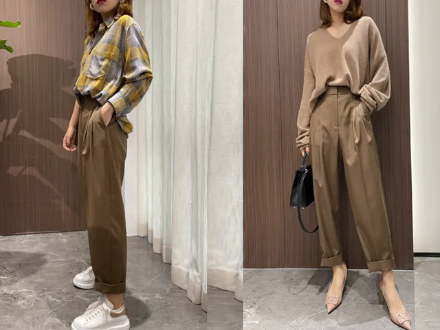 这样一件百搭不厌的奶奶裤,在今年火了,想要穿得年轻一些,衬衫+小白鞋,想要穿得稍微成熟一些,可以选择V领针织衫 + 尖角高跟鞋这样搭配方式。