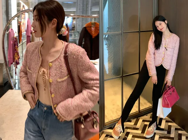 粉色的小香风外套,编织的很有质感,细节处理得都很好。小香风外套,也是当下很多人喜欢单品,搭配起来也比较简单,牛仔裤或者黑色的小脚裤,都非常的好看。