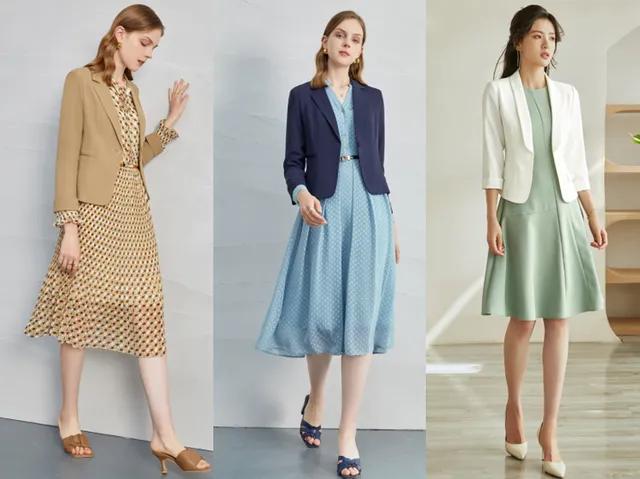 通勤且干练的小西装,一定是OL的最爱!穿在身上,让人看起来精神饱满、容光焕发。小西装,最好不要选择过于正式的,稍微休闲一点的风格,会让你更加有亲和力。小西装搭配裙装,是最美的搭配方式,就像第三款,白色短款小西装,配上荷叶绿连衣裙,非常的小清新,特别柔美!