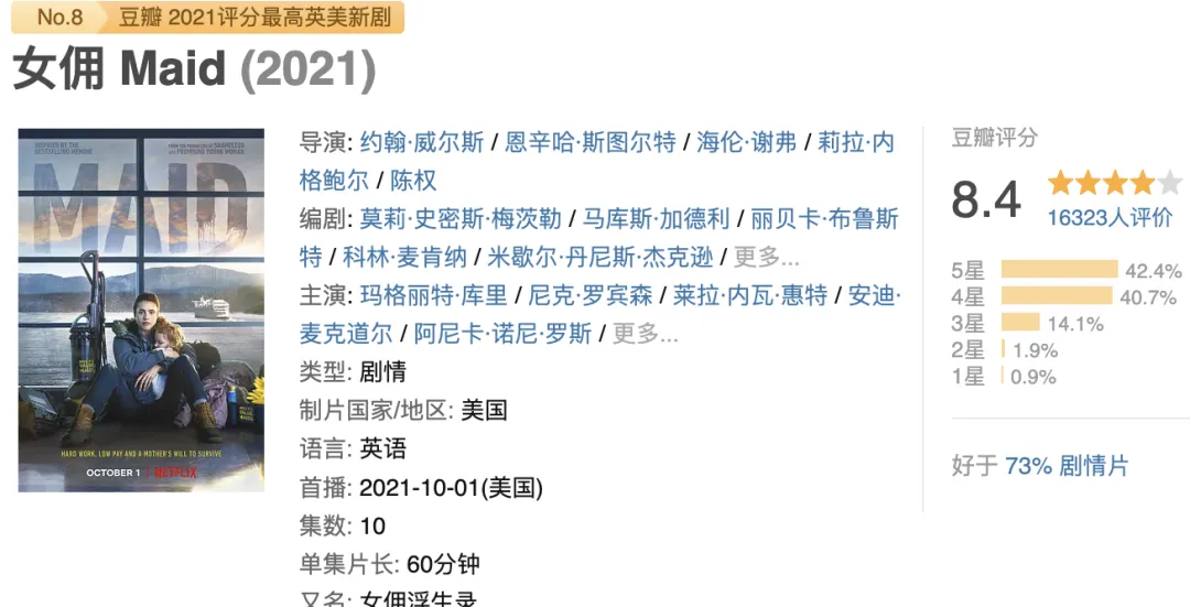 更扎心的是,这是真人真事改编,原作者斯蒂芬妮·兰德真的靠做清洁维生,后来写下自己的故事。