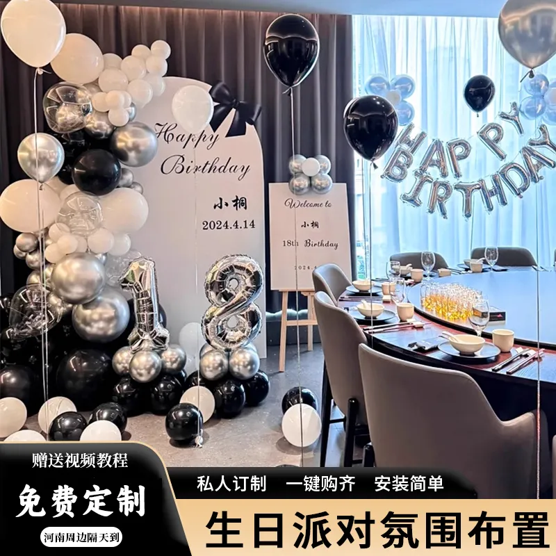 新款网红18岁女神成人礼生日气球装饰布置高级告白派对场景背景墙