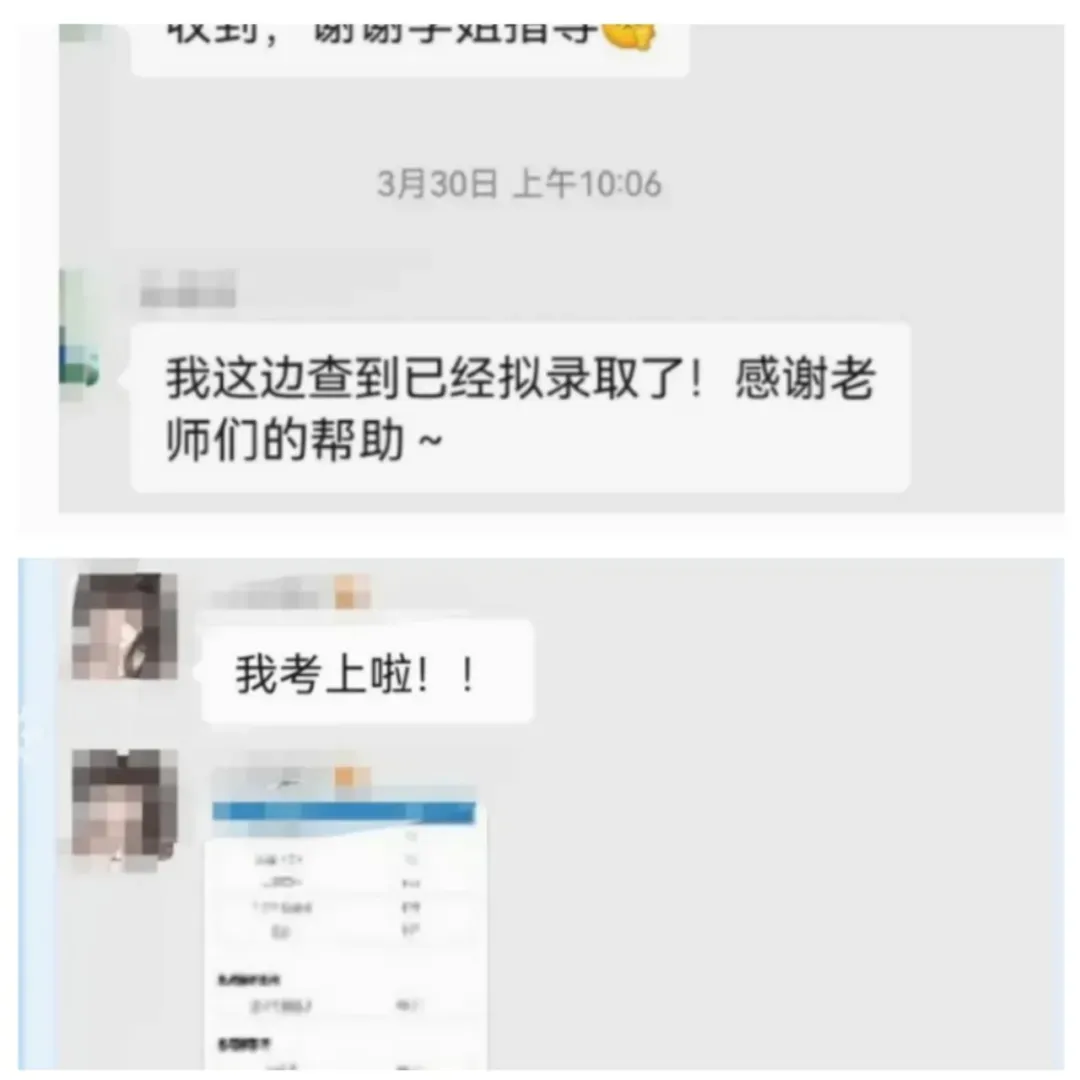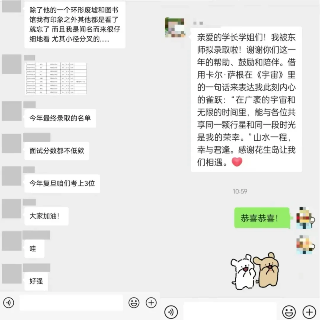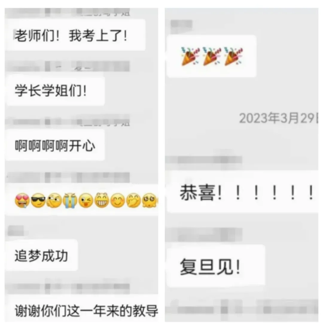 七年来,我们陪伴了200+同学通过初试,100+同学成功上岸。每一年都收到同学们欢喜的上岸信息: