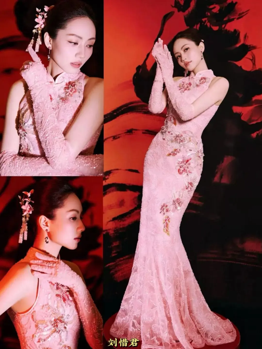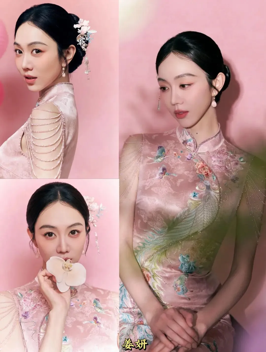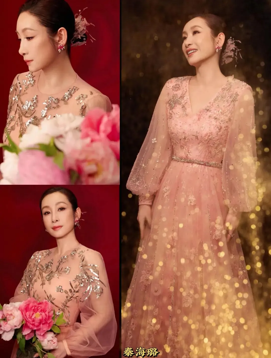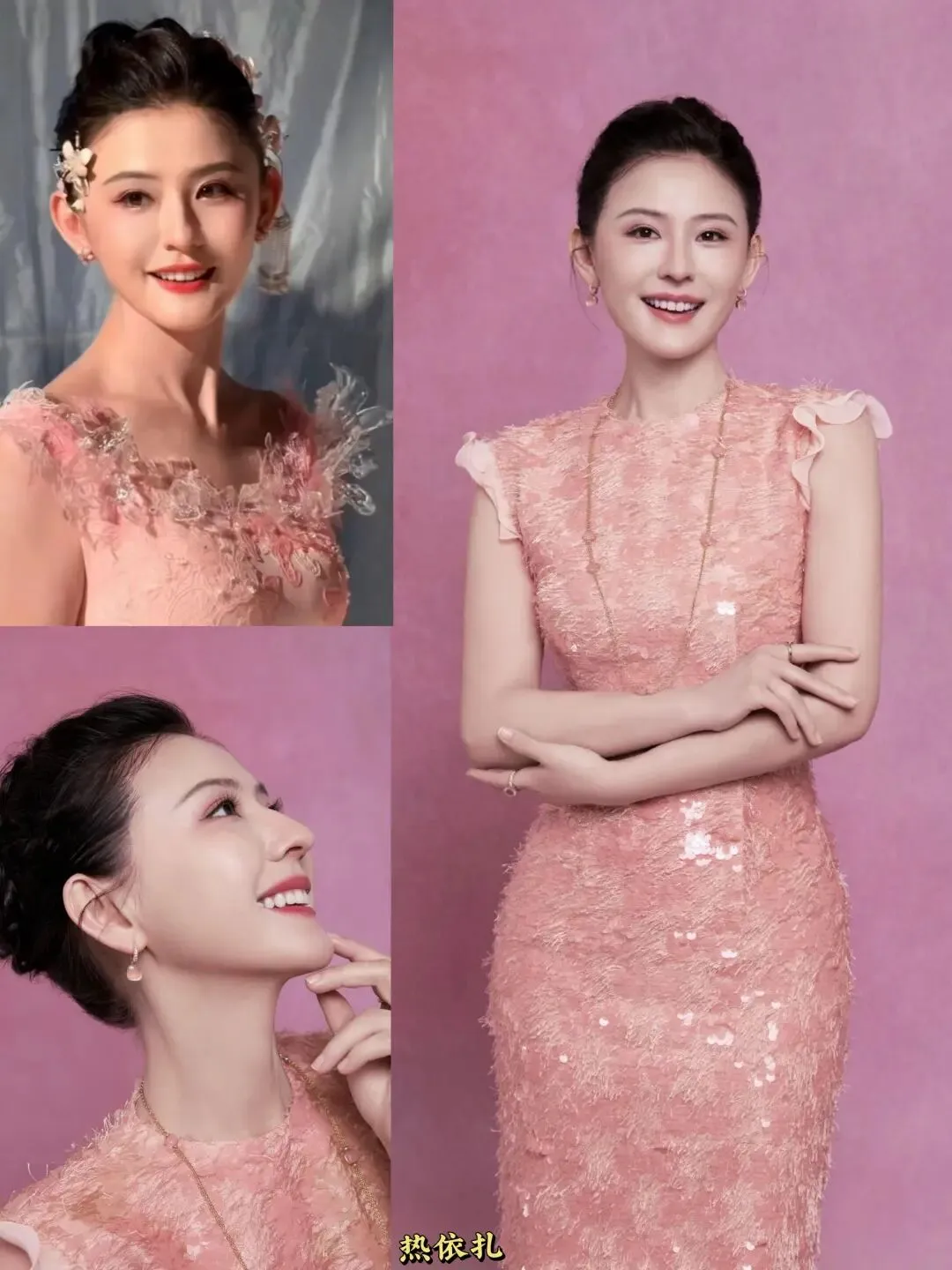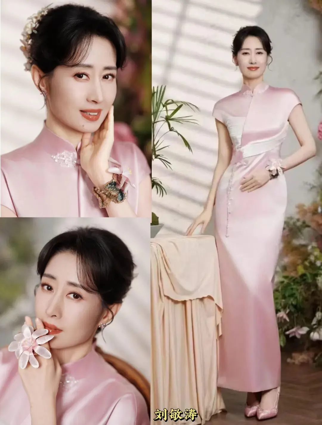 一袭粉裙端庄大气,体态舒展、眼神从容,自带岁月沉淀的底气。