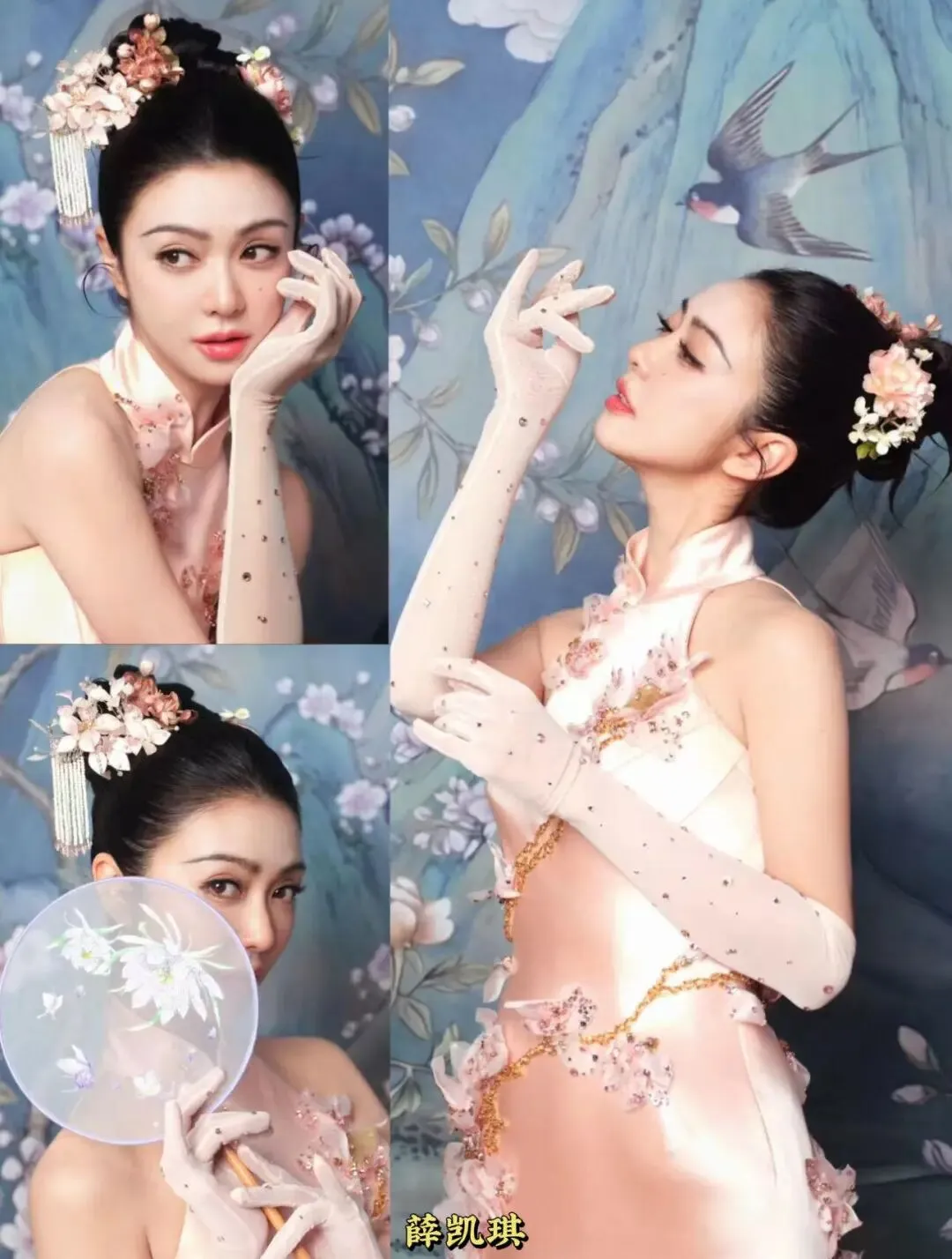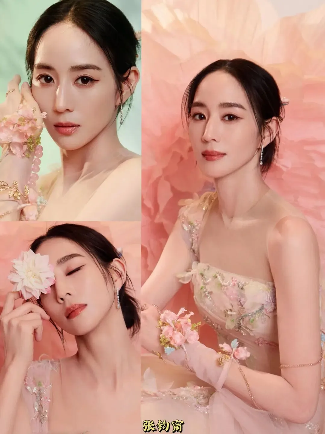 44岁状态依旧能打,粉色簪花长裙温婉又灵动,轻扭腰肢、眼波流转,媚而不俗、甜而不腻。