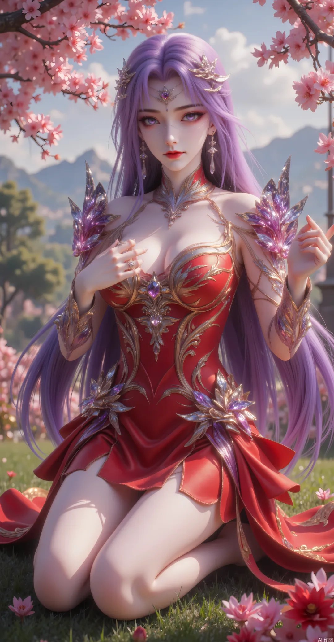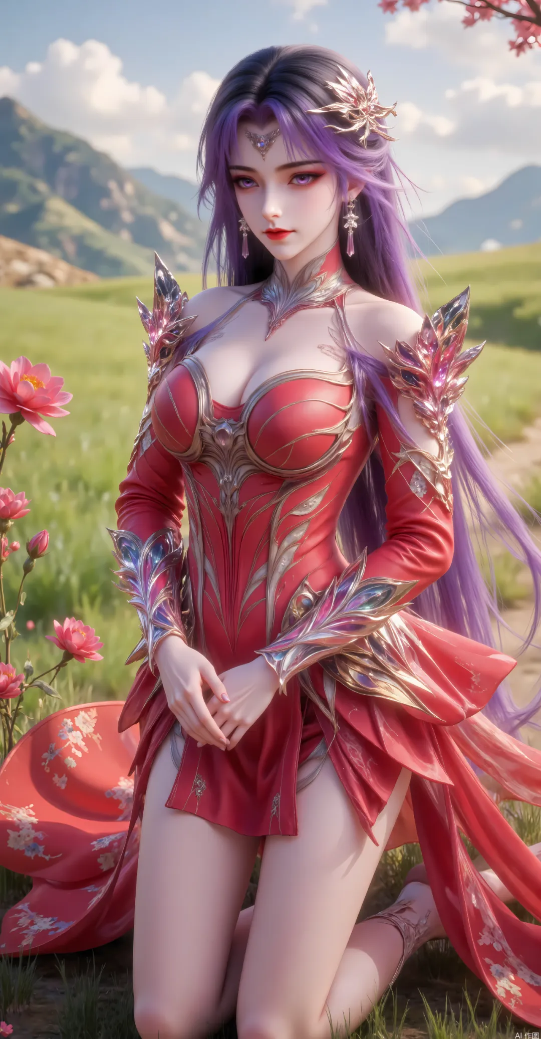 一头浓郁的紫色长发,垂落至腰际,光泽流动,如同紫色的绸缎,发质柔顺亮泽,可随意披散,也可束起,披散时,发丝随风飘动,妖异而动人,束起时,用一枚雕刻着繁复犀纹与月纹的玉冠束成高髻,余下的几缕碎发垂在额前与颈间,衬得她的容颜愈发绝美,偶尔会在发间点缀几枚水晶饰品,与额间的犀角相呼应,添几分神圣与灵动。此外,她的鼻梁一侧,还垂着一枚小小的珍珠挂链,珍珠莹白圆润,泛着淡淡的光泽,随着她的呼吸微微晃动,每一次摇曳,都仿佛在诉说无声的故事,让她整体的气质在灵动之外,更萦绕着一丝难以捉摸的魅惑。此时的她,美在清冷与魅惑的交织,美在高贵与从容的融合,美在强者与引路人的双重气质碰撞,成为九天十地中最惊艳的天骄之一,连石昊都为之惊艳,堪称“颜值比肩火灵儿”的存在。