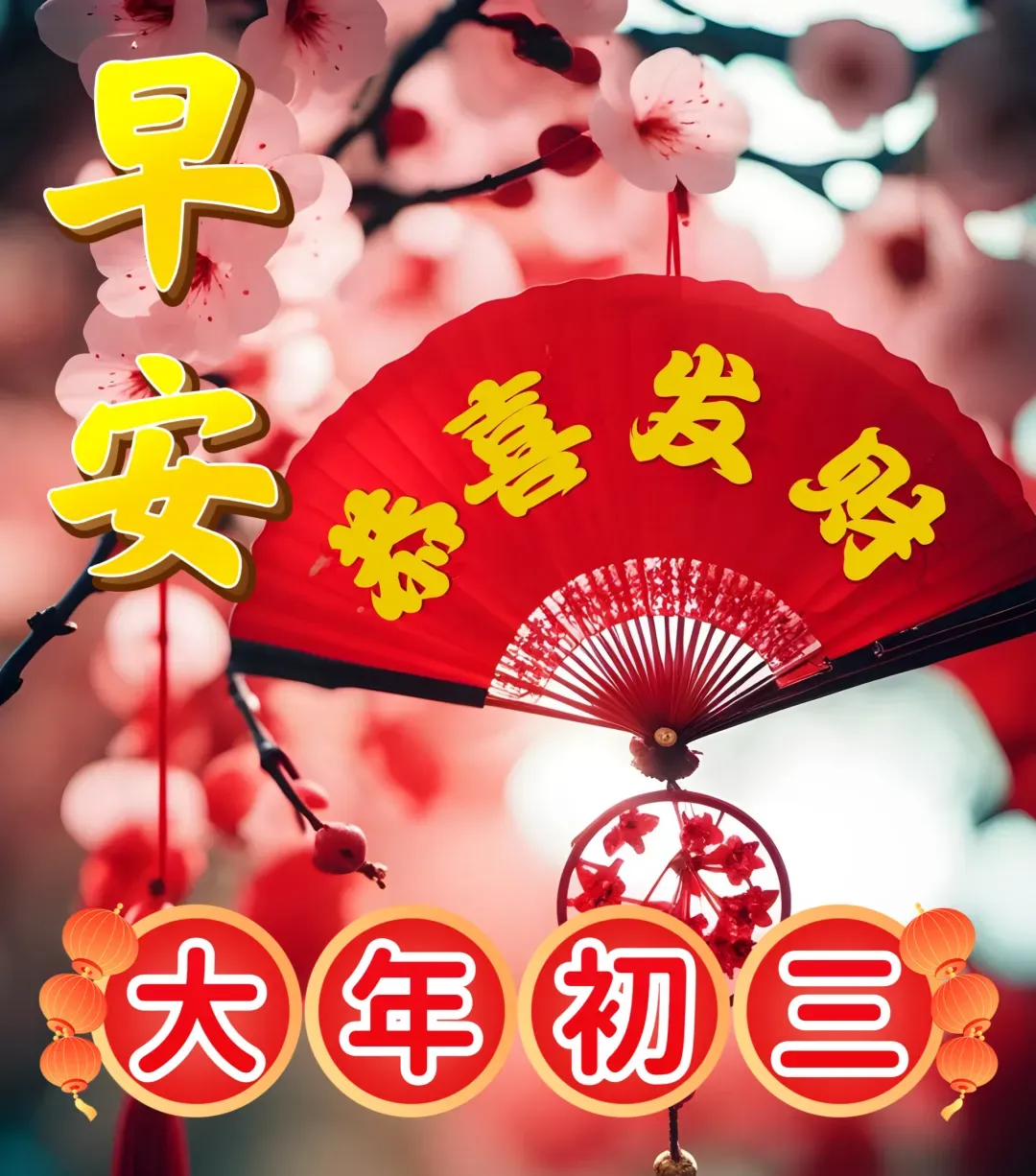🌞马年到,喜洋洋,大年初三送祝福。💕平安幸福永相伴,快乐如潮围你绕。🌷合家欢乐共团圆,财运亨通连年好。🌊新年好运齐康宁,事事顺利情无限。🌈