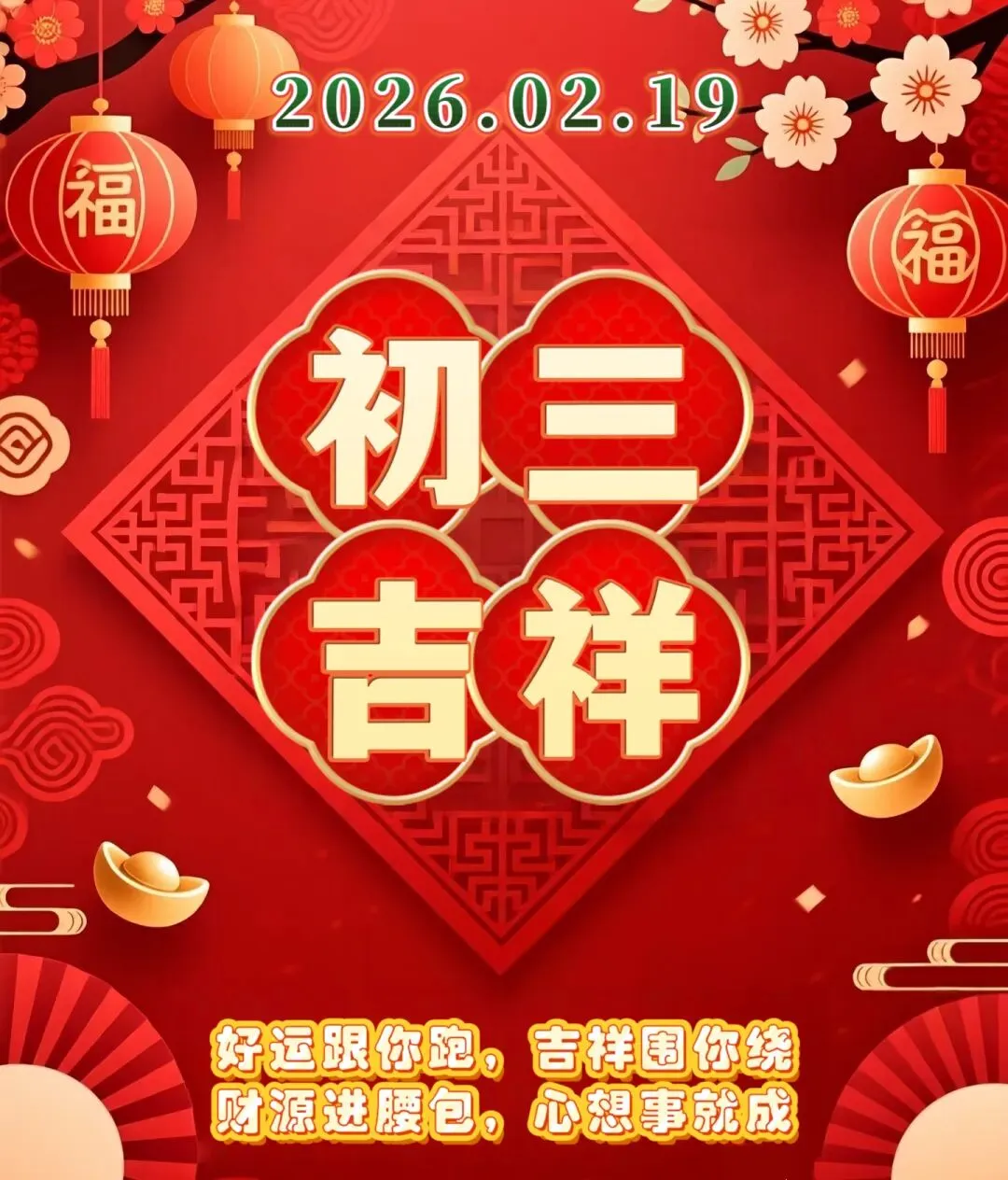 2月19日-大年初三祝福图片,大年初三祝福语问候