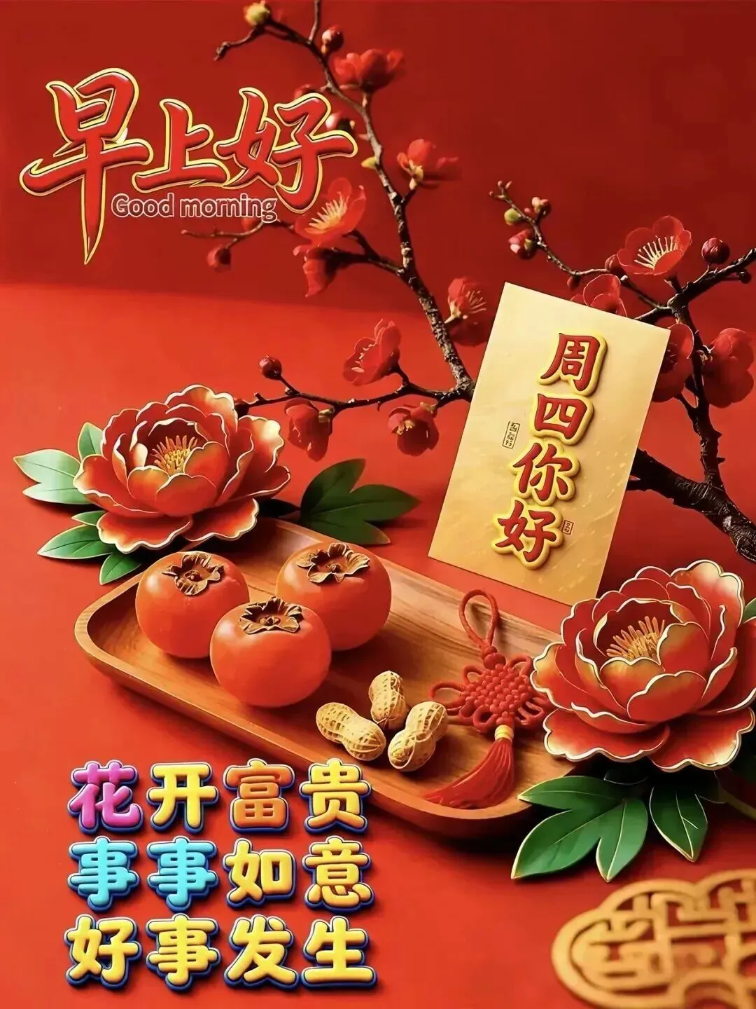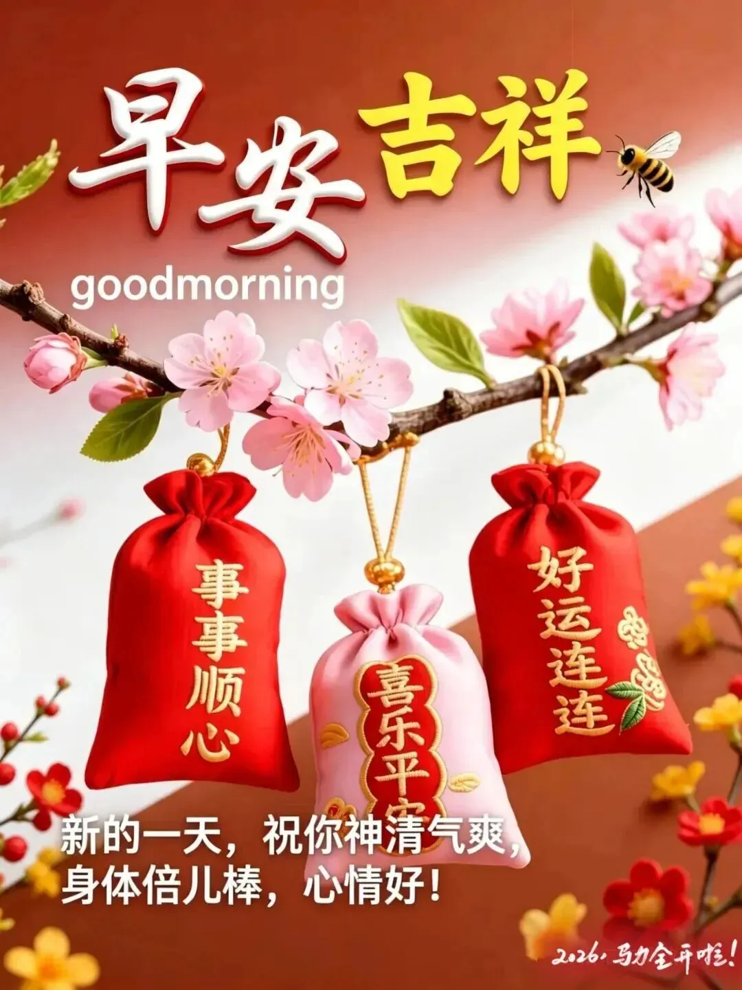 正月初三,周四早安🌷 愿清晨的第一缕阳光,带给你一整年的温暖与好运☀️ 愿你生活不拥挤,笑容不缺席,平安常在,幸福常伴🧧 所求皆所愿,所盼皆成真,马年大吉,万事兴旺,喜乐长安🌿