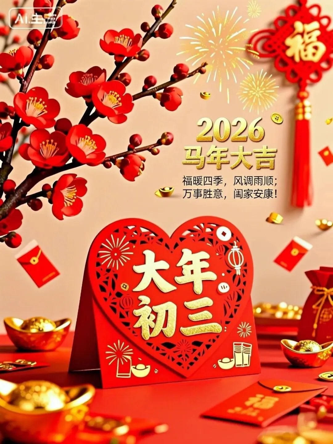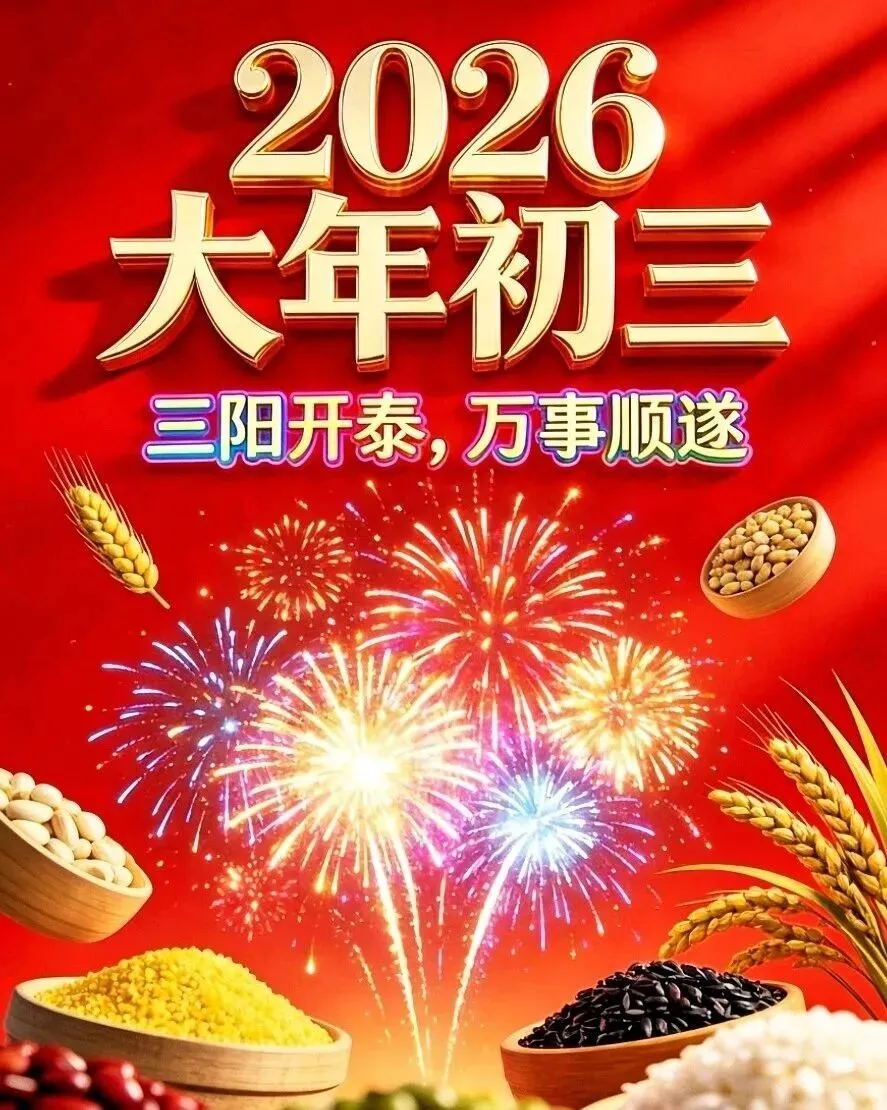 【谷子生日篇】初三乃是谷子日,祈盼丰收好兆头。米缸满满无忧虑,炊烟袅袅是乡愁。愿您新的一年,不仅有诗和远方,更有这人间烟火的富足与安康!【三羊开泰篇】一元复始,万象更新,初三正值三羊泰。愿您:烦恼清零,快乐三倍;工资翻番,好运三连。借这吉日吉时,把“三生有幸”的祝福打包送给您!