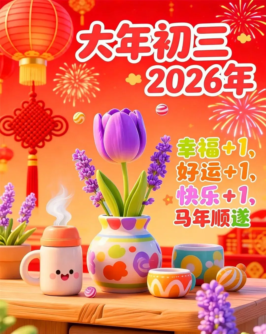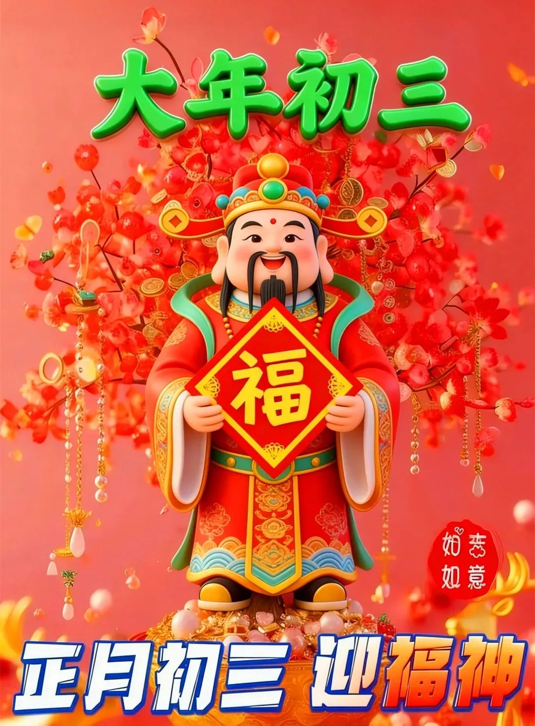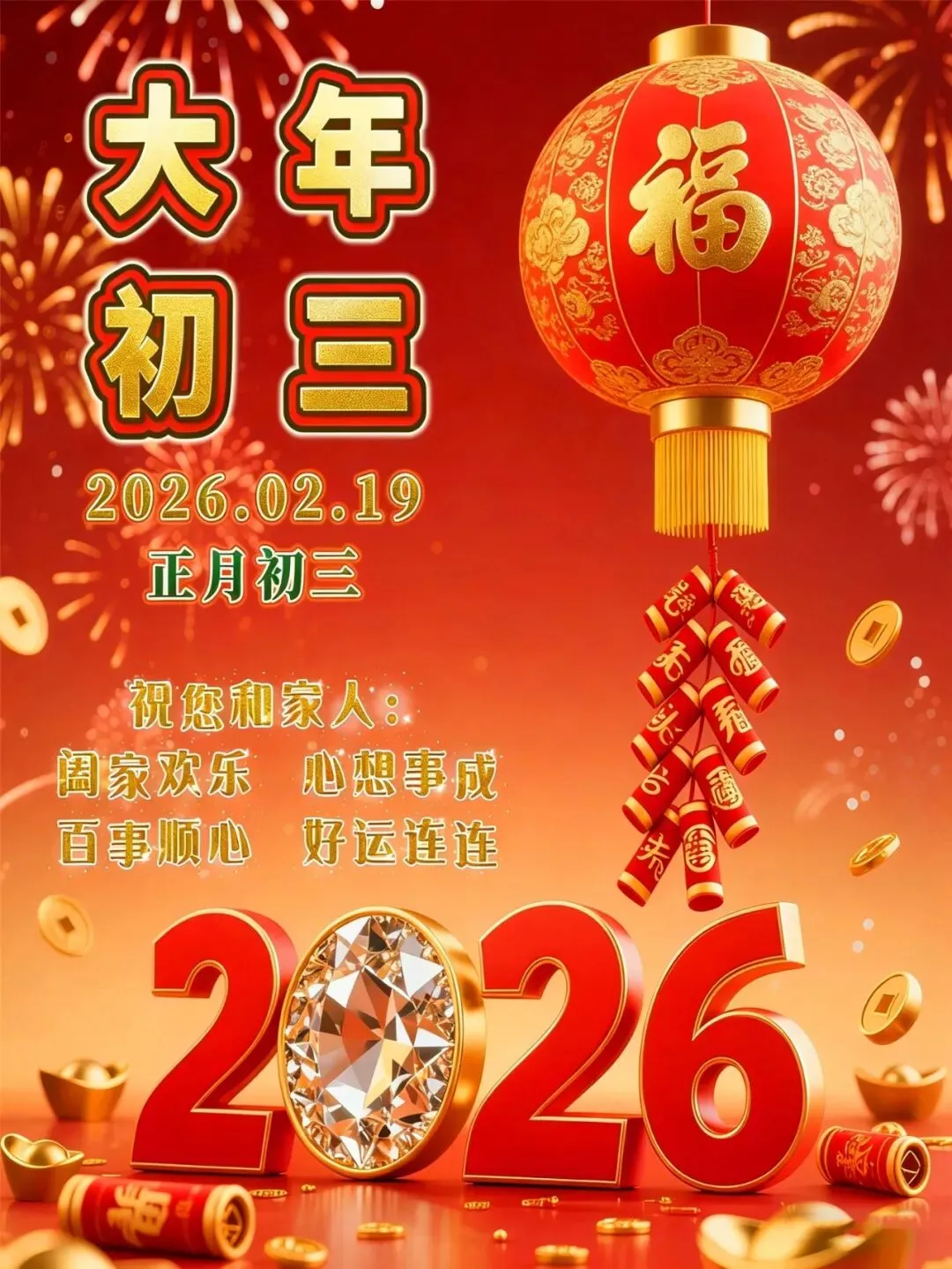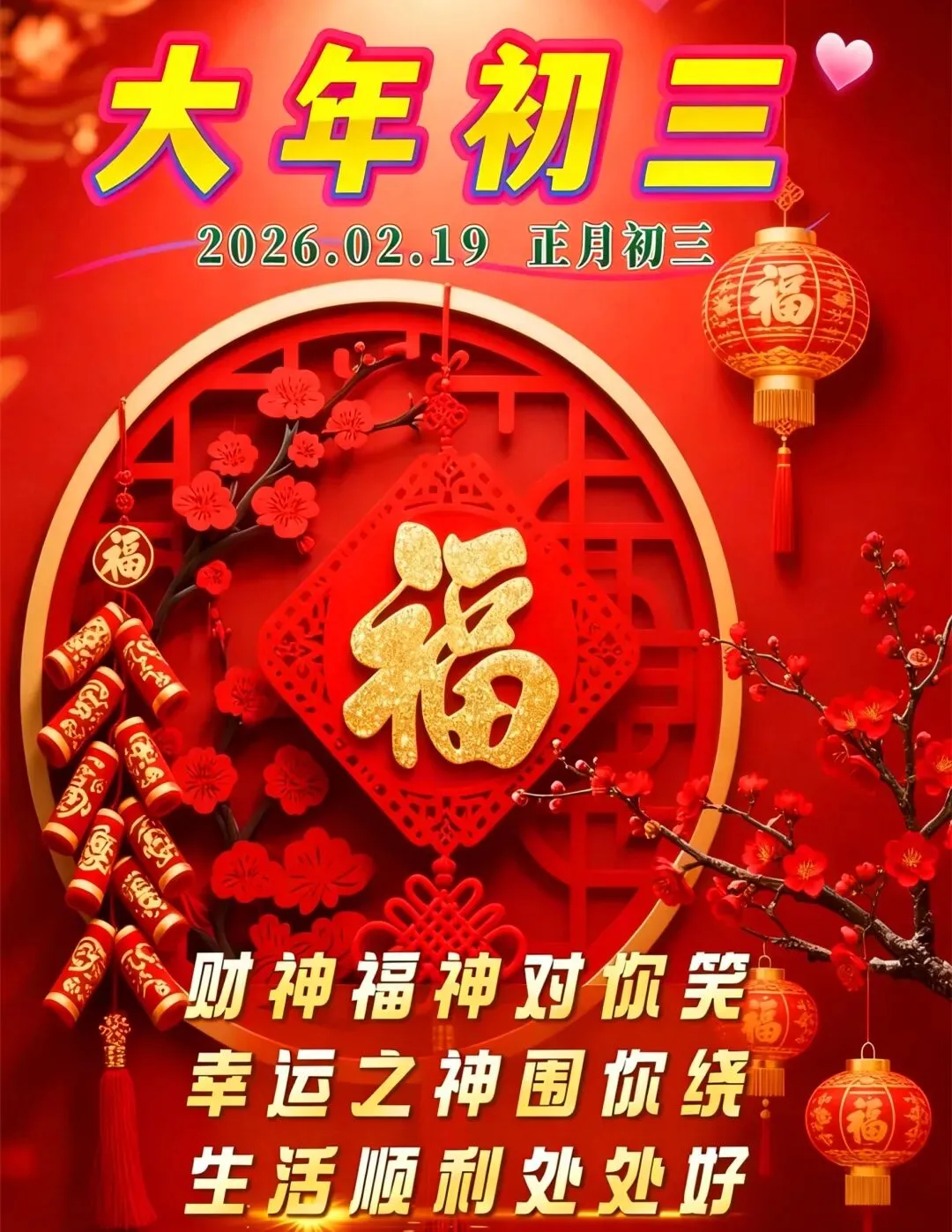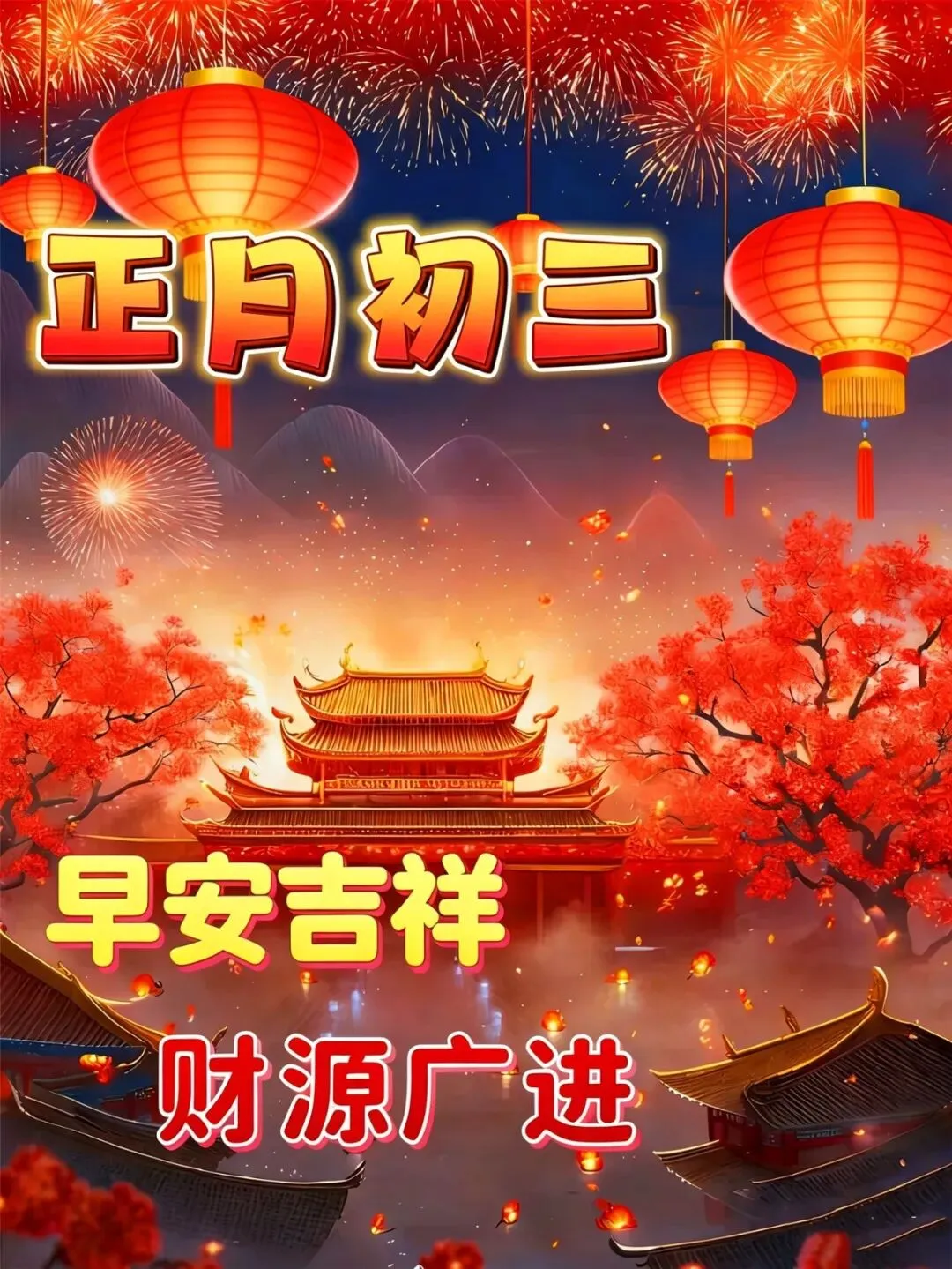 大年初三,新年的第三天,给所有人送祝福,祝大家在2026年:健康平安,福禄双全,马年行大运,马年发财!