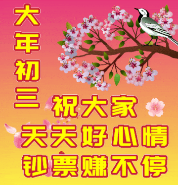 今天是大年初三,在这个大吉大利发财日,送您独一无二的福气,一分福气祝您发幸福财,愿您幸福生活好运来!二分福气祝您发健康财,愿您金银满堂平安在!三分福气祝您发好运财,愿您吉祥如意健康永常在!