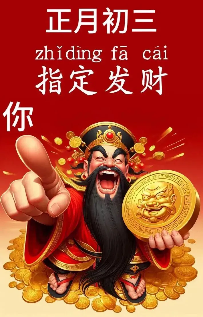 拜个年,风调雨顺平安年,拜个年,吉祥如意健康年,拜个年,财源广进发财年,今天是大年初三,在这给各位拜年啦!