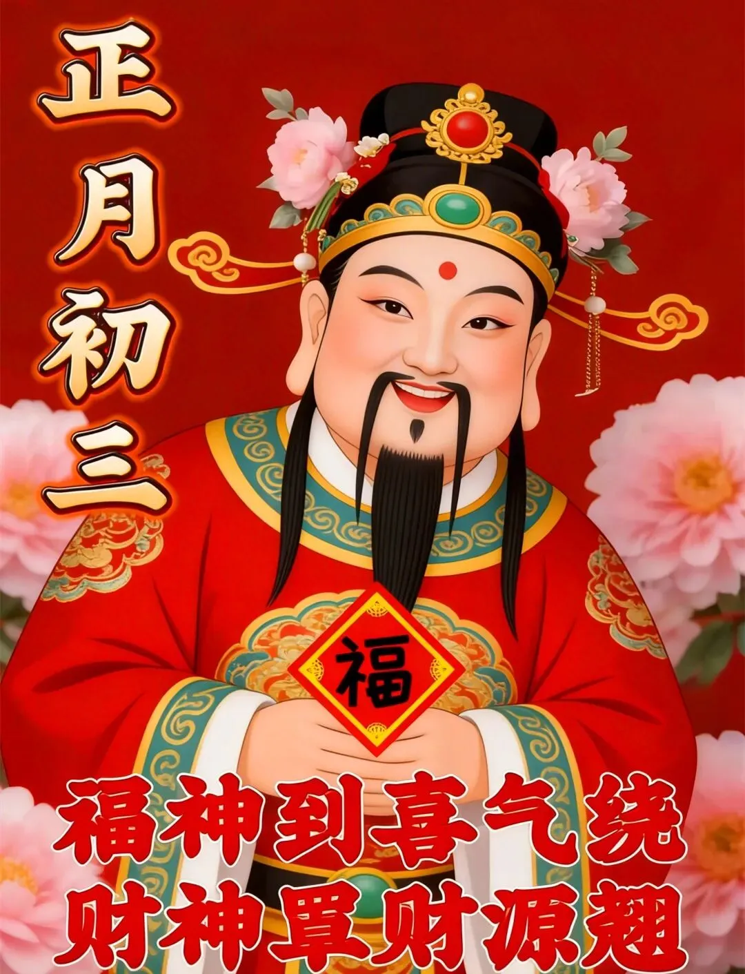今天是大年初三,拜个年,问声好,福禄寿喜来拜访,其乐融融喜团圆,今天收到这份祝福的人,注定2026年一整年里,福星高照,万事顺心~