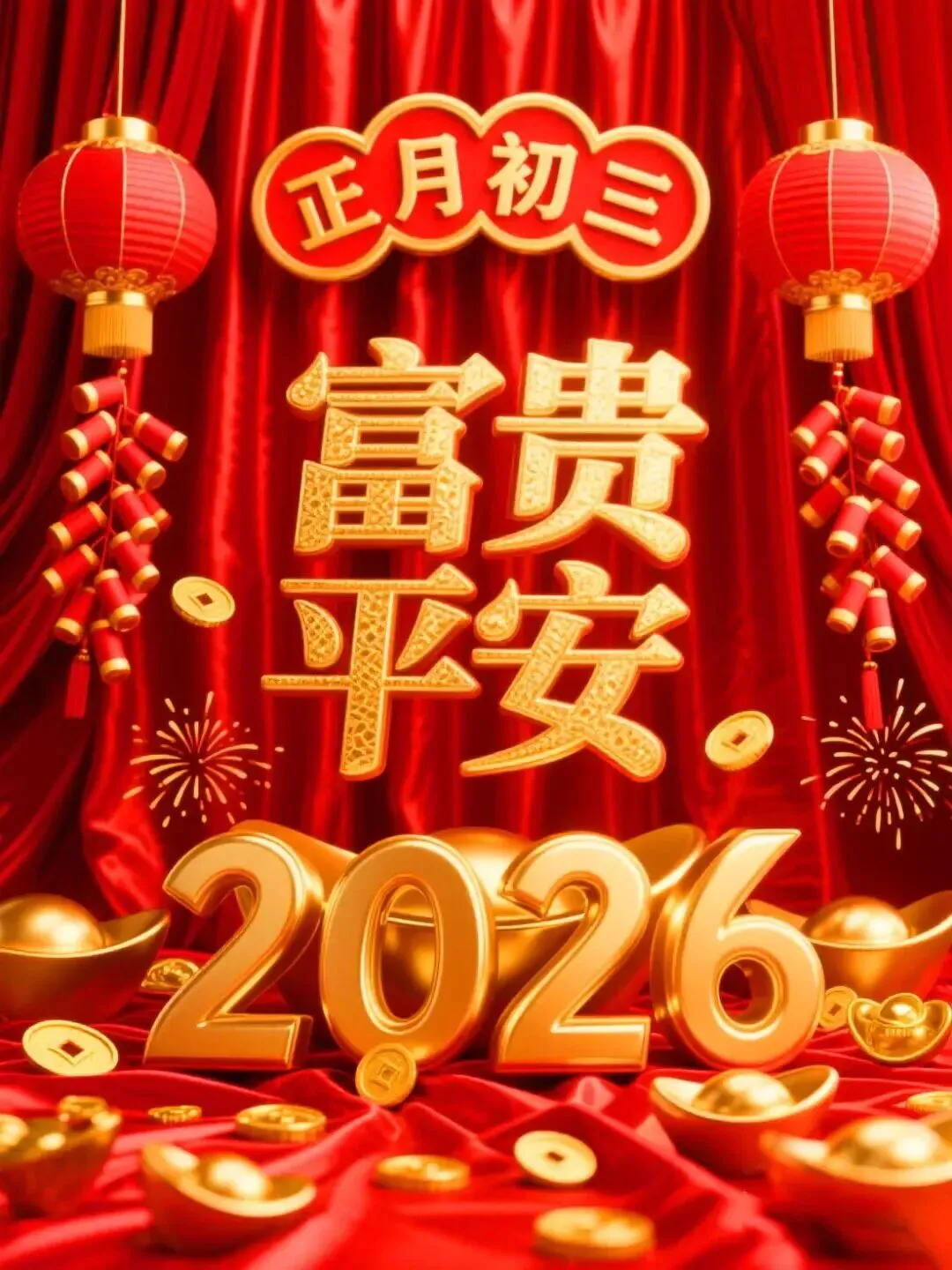 大年初三,顺风 · 顺水 · 顺心顺意,愿你好事接二连三,2026万事皆顺!