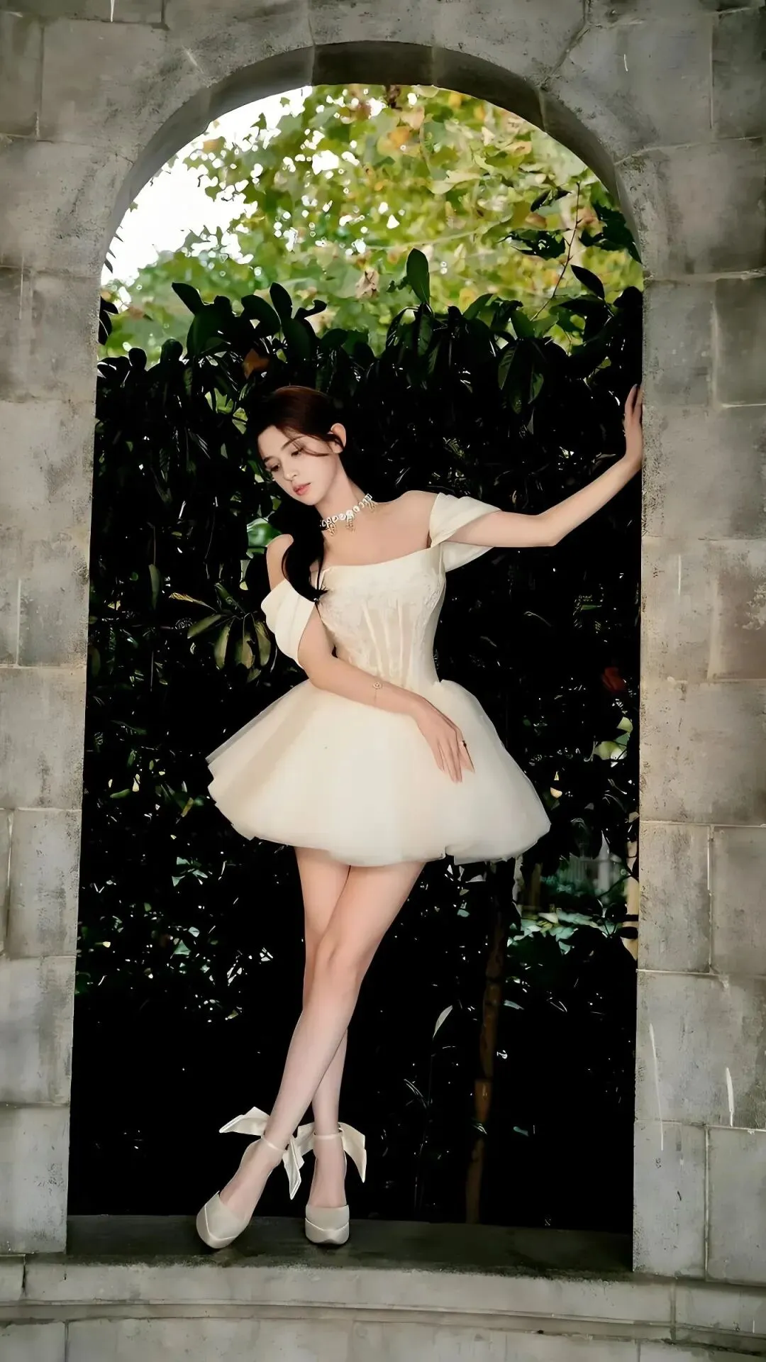 一袭极简的白色蕾丝吊带长裙,搭配海风般微卷的长发,她把新疆姑娘的明艳骨相与意式松弛的优雅完美融合。