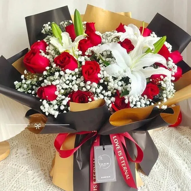 喜欢好似一阵猛烈的龙卷风,爱则如细水般长流。洁白无瑕的百合与清新明媚的香槟玫瑰相结合,一如对你的爱一心一意。借【恋恋情深】,将想念与爱意如潮水,向最最亲爱的恋人推去,让情意紧紧相随。