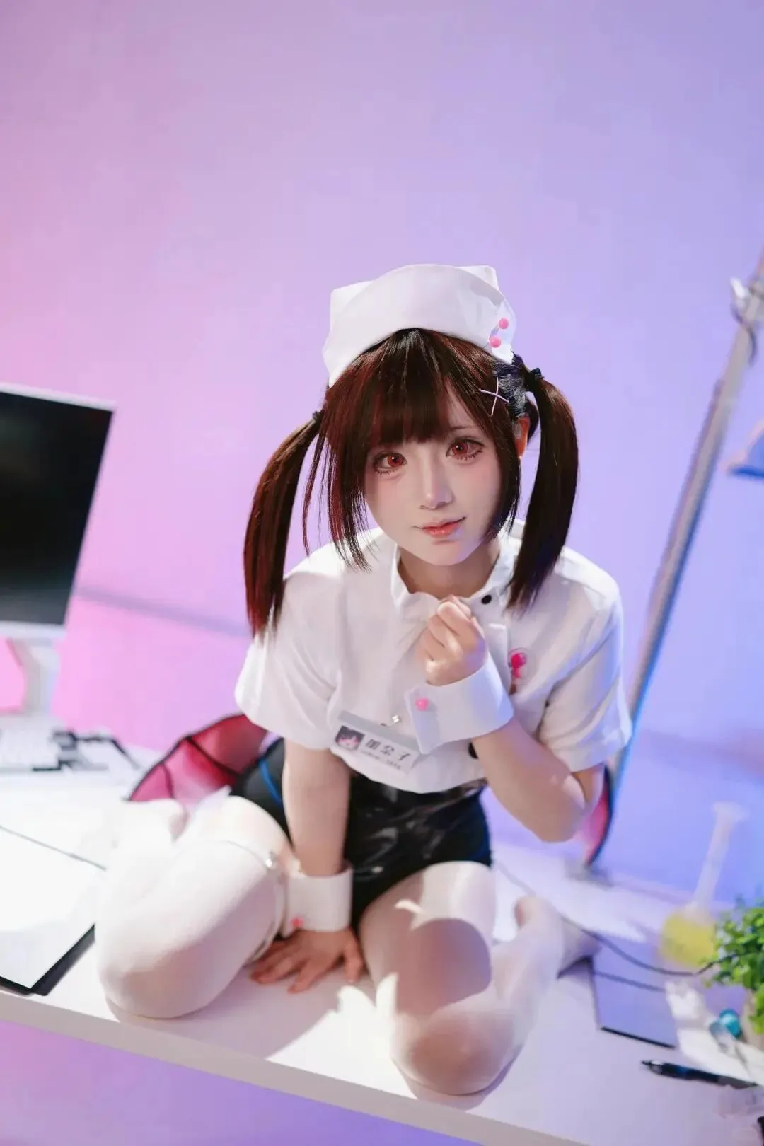 第一套造型是淡蓝色碎花连衣裙,裙摆堪堪盖过大腿根,露出的双腿白得晃眼,皮肤细滑得像刚剥壳的鸡蛋。拍摄时她故意弯腰整理裙摆,腰臀间的弧线软得能掐出水,我举着相机的手指忍不住发颤。她踩着细高跟凑过来,胸口几乎贴到我的胳膊,甜橙味的呼吸扫过耳边:“林老师,你看这张是不是没拍好?要不要凑近点补个特写?”没等我反应,她微凉的指尖已经捏上我的耳垂,笑得狡黠:“脸都红透了,看来我的电流起效很快嘛。”