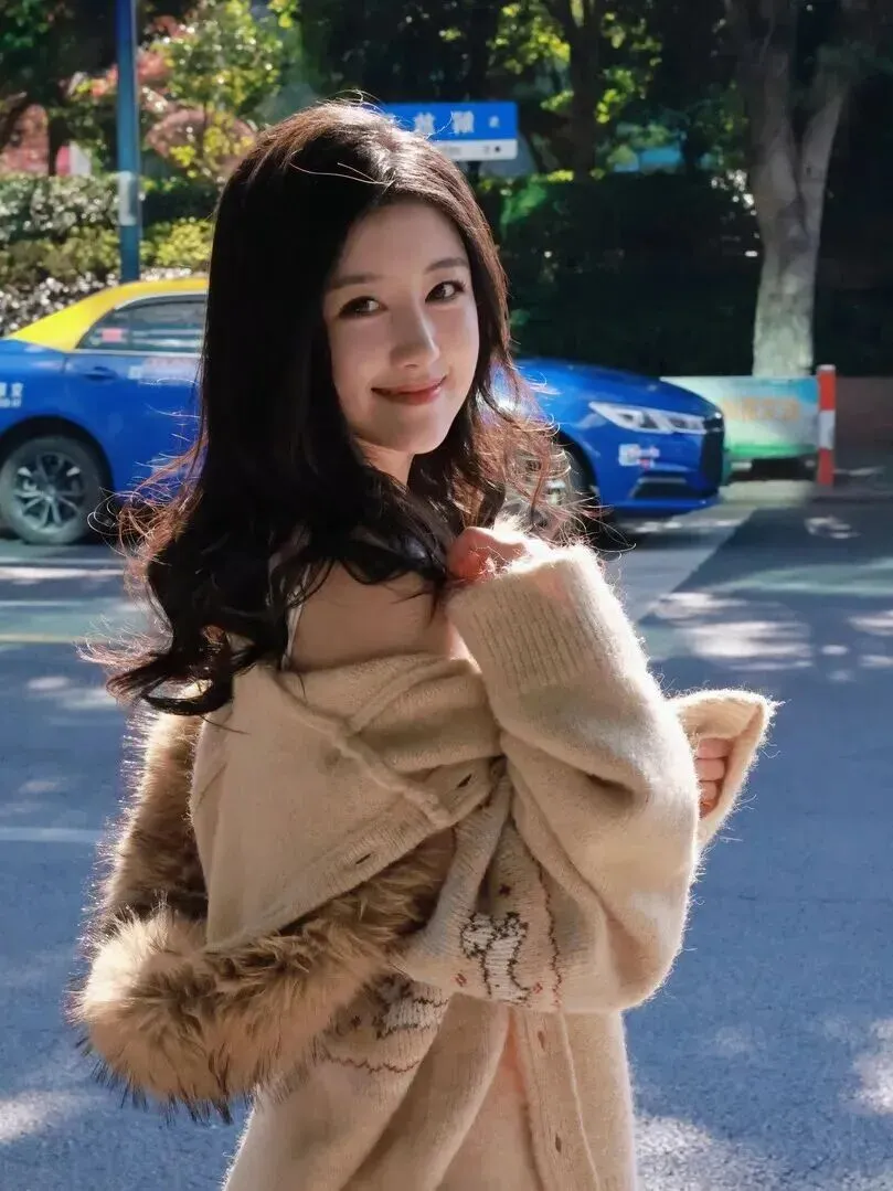 先来.看看.街头风.。一件.米杏色的针织.开衫,.颜色暖暖的.,像.阳光洒在身上.。版.型宽.松,穿起.来舒.服又.随意,袖子上.的小狗刺.绣可.爱极了,下.摆还.有仿皮草的.装饰,细节.满满。.搭配深棕.色的大波浪卷.发,整个人看.起来甜甜的.,站.在蓝黄色的.出租车旁边.,颜色.碰撞.得刚刚好.,随便拍张.照片.都像杂志.大片。这.种穿搭适合日.常逛街,简.单又不失.个性。