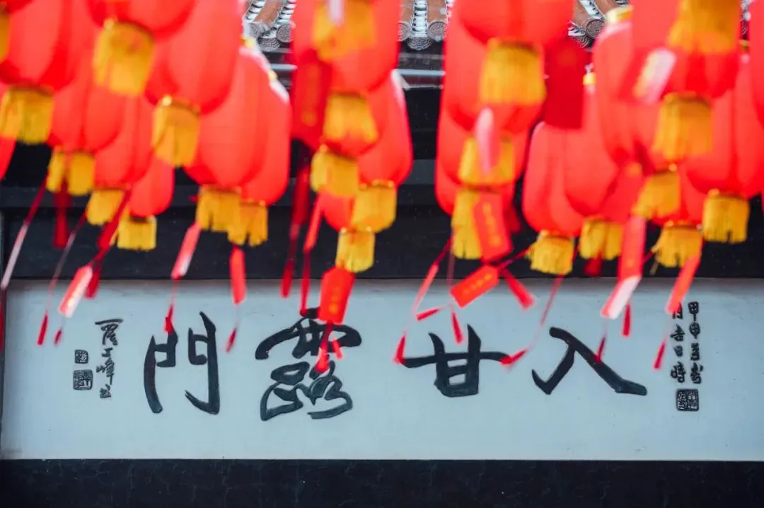 寺庙三门之“中门”,上书“超山青莲寺”寺名。