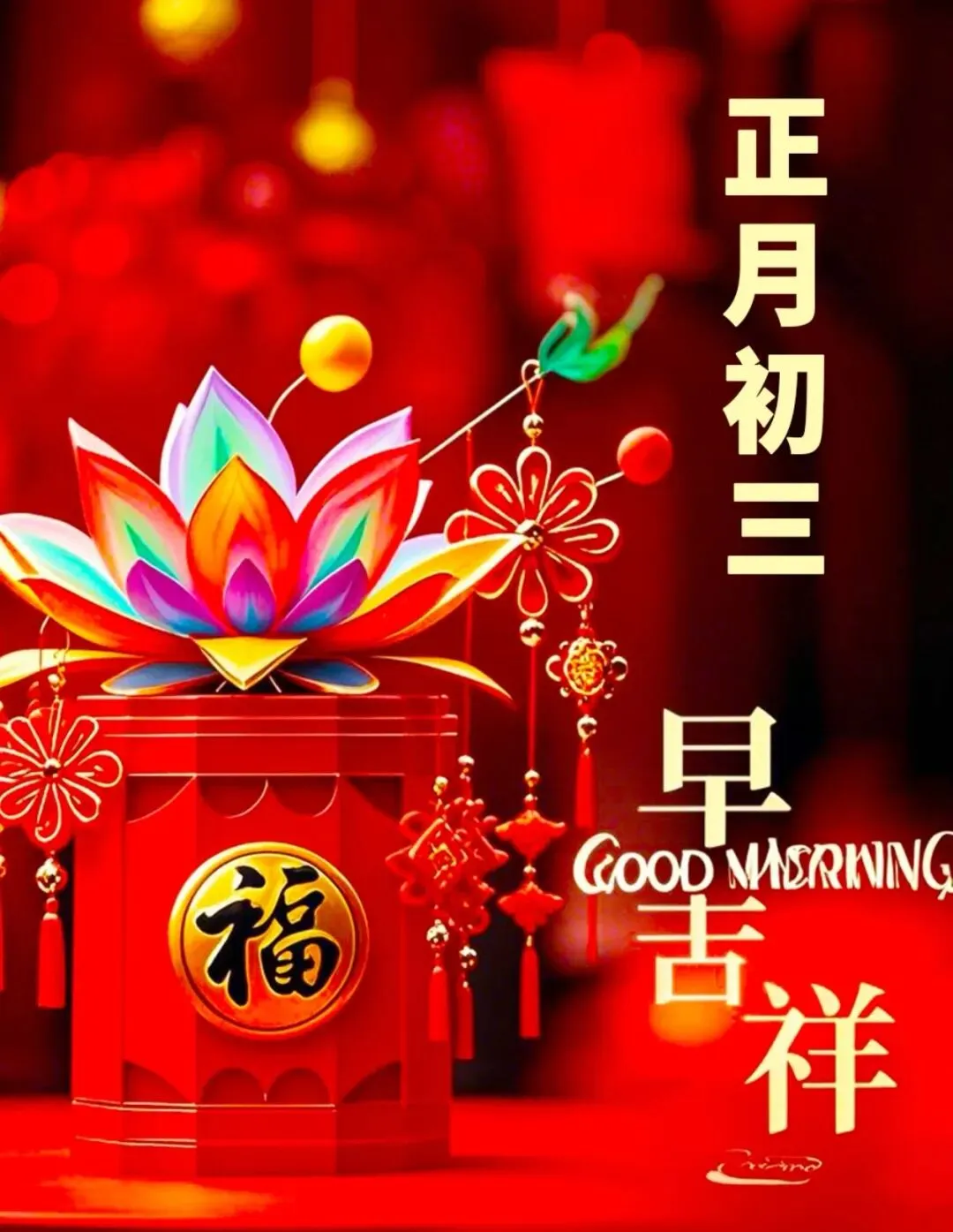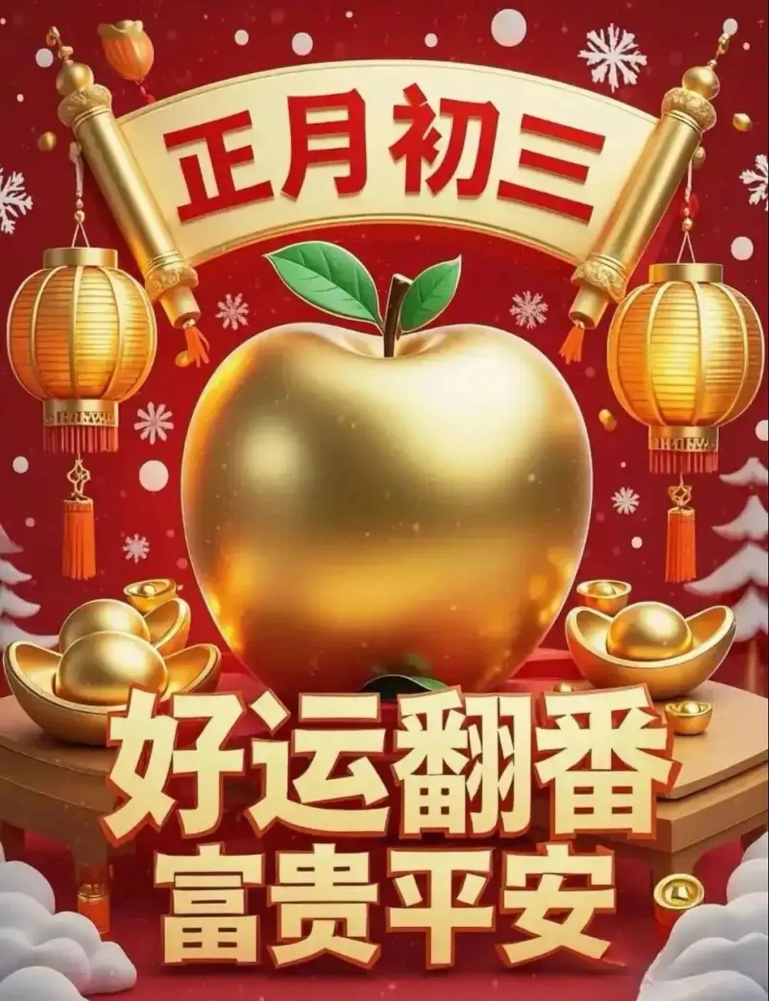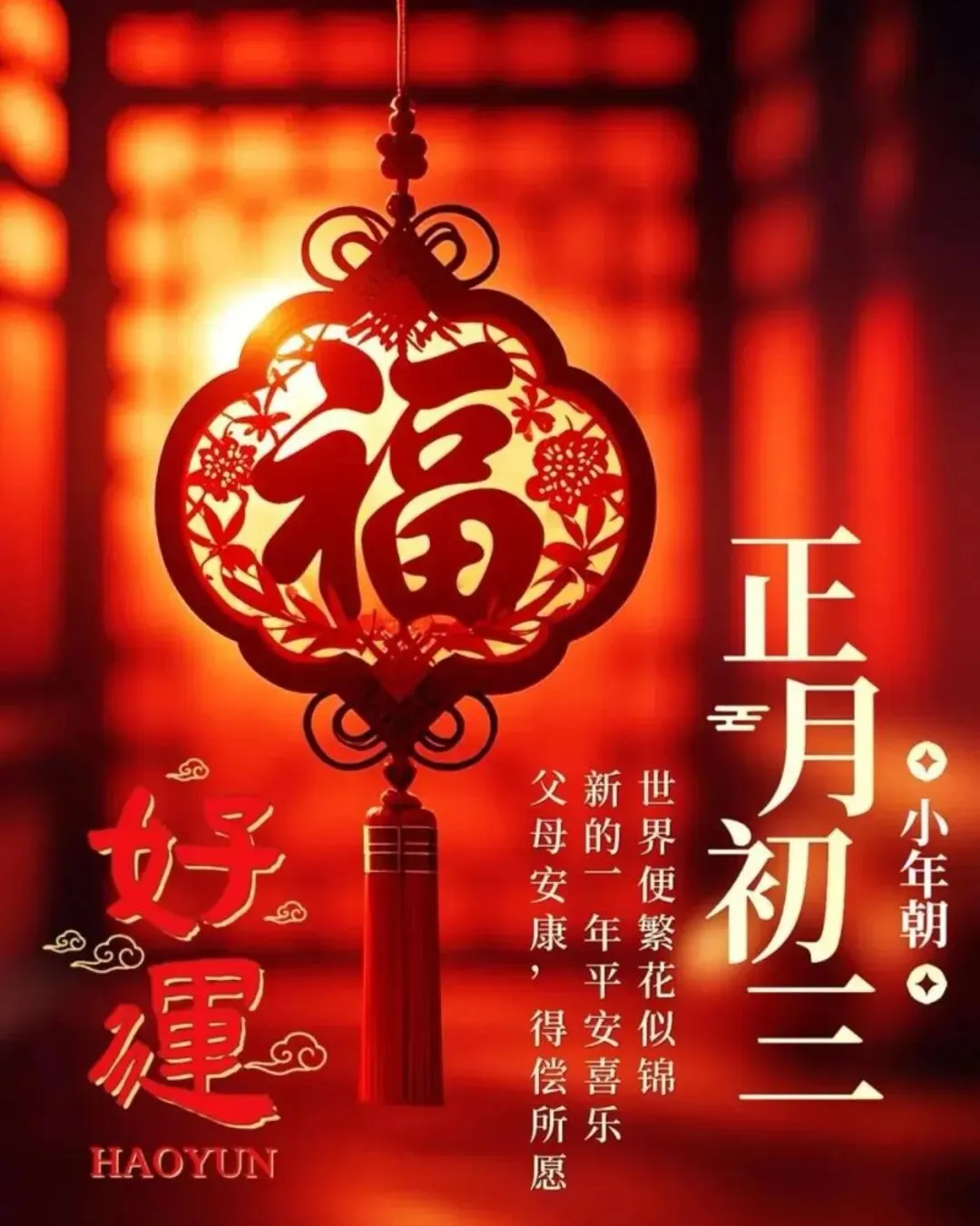 3. 大年初三,贴赤口,避是非。愿您新的一年,口吐莲花,良言暖语;愿所遇皆良善,所行化坦途,家中常有笑声,心中永无烦忧。