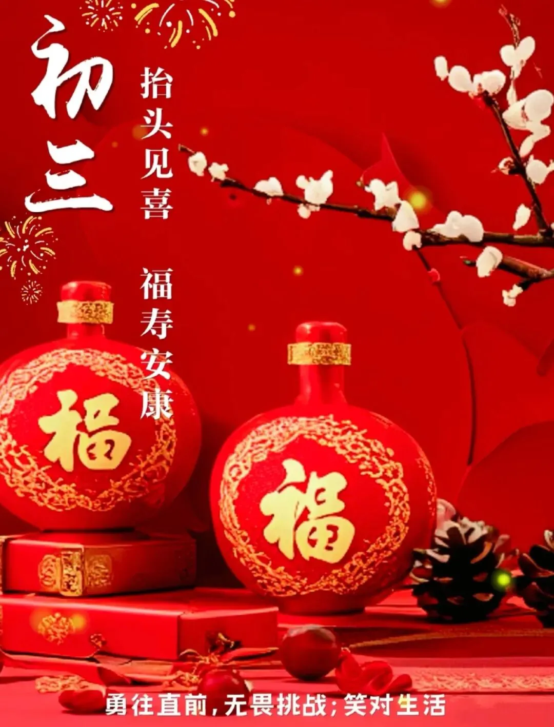 6. 大年初三早安!扫去旧尘,迎来新暖。愿您把过去的不快统统清零,把未来的美好一一请进。今日起,只生欢喜不生愁。
