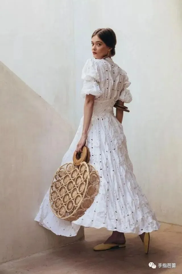 亚麻质地的白色长裙可以降低人们皮肤的表面温度,夏天穿着更凉爽。亚麻质地小白裙裙身的褶皱与草帽、编织包等小元素能够很好的进行呼应,凸显田园气息,穿上它去公园散步或旅行,有一种大自然纯正的感觉。