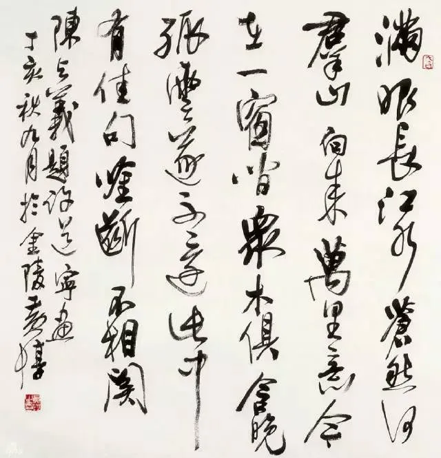 著名书法家、篆刻家黄惇教授曾这样评价自己的学生:“许静善于在自己的生活中调动情绪,并在书法中挥写自己的感悟,她作品中那些奇妙的神来之笔,可能是无法重复的。”