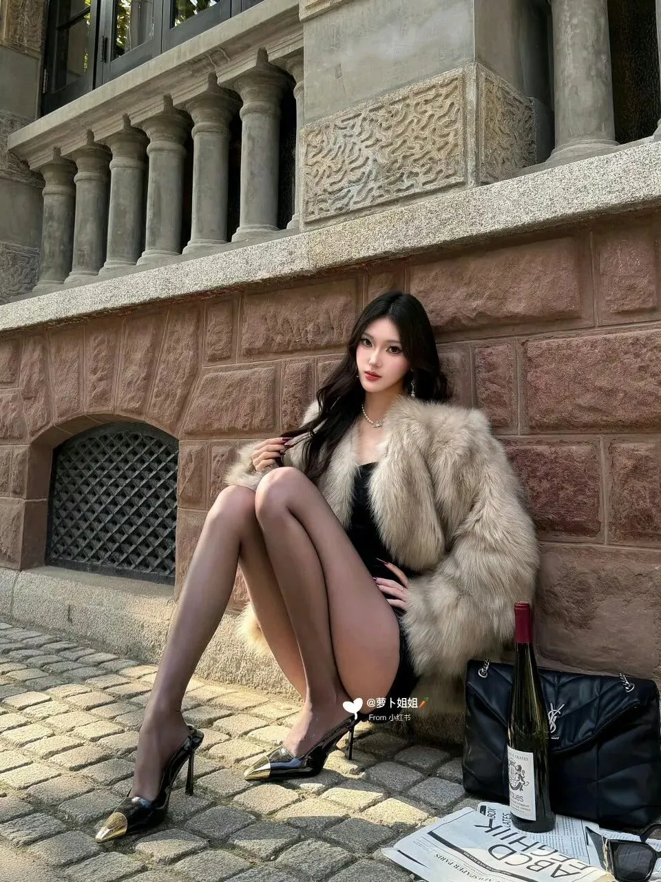 当奢华的皮草邂逅性感的黑丝,一场关于冬日、高级与不羁的时尚狂想,便在复古建筑的背景下热烈上演。这种看似矛盾的组合,却完美诠释了"又美又飒"的冬日穿搭哲学,让温暖与性感不再对立,而是成为彼此最完美的注脚。