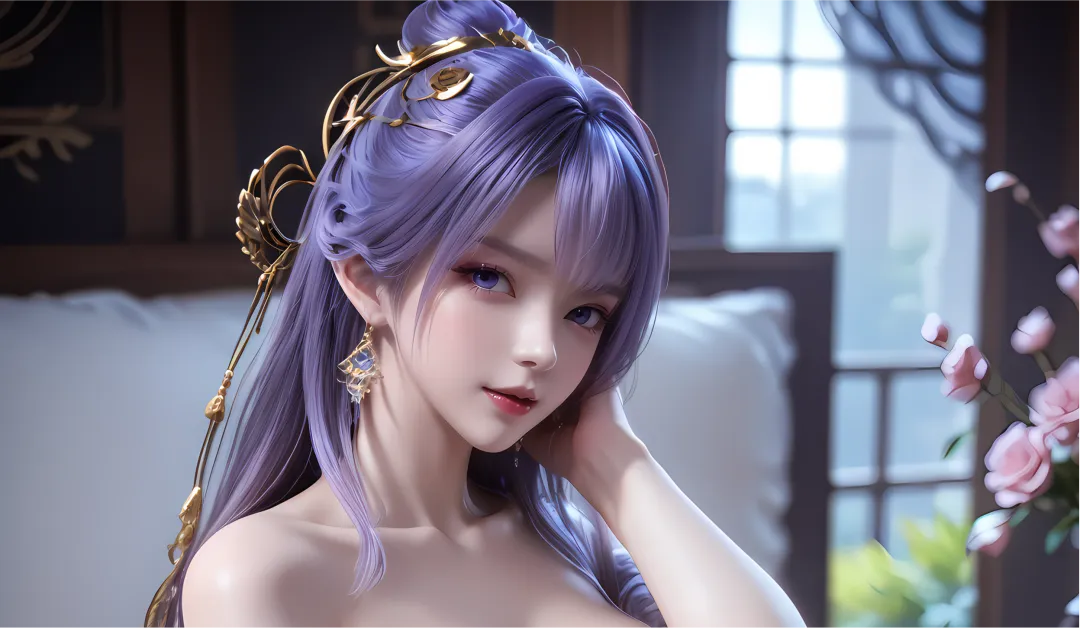 一头乌黑中泛着紫光的长发如瀑布般垂落至腰际,发丝浓密顺滑,泛着莹润的光泽,质地柔软却带着几分韧性,是她最鲜明的标志。平日里,她会将头顶的部分长发向上盘绕成精致的发髻,既彰显长老的威严,又保留了女性的柔美,发髻上插着一枚雕刻着紫焰纹样的金色发簪,簪身镶嵌着细小的紫色晶石,既美观又能辅助凝聚紫极天火;余下的长发自然垂落,随风轻轻晃动,发尾微微卷曲,泛着淡淡的紫光,添了几分飘逸与妖异。发间偶尔会点缀一两朵紫色的灵植小花,既是装饰,亦是凝聚灵气的媒介,与她的紫极天火属性完美呼应。此时的她,美如“九天紫焰仙子”,威严冷艳,气场逼人,是青云宗的骄傲,也是无数弟子心中敬畏的存在。