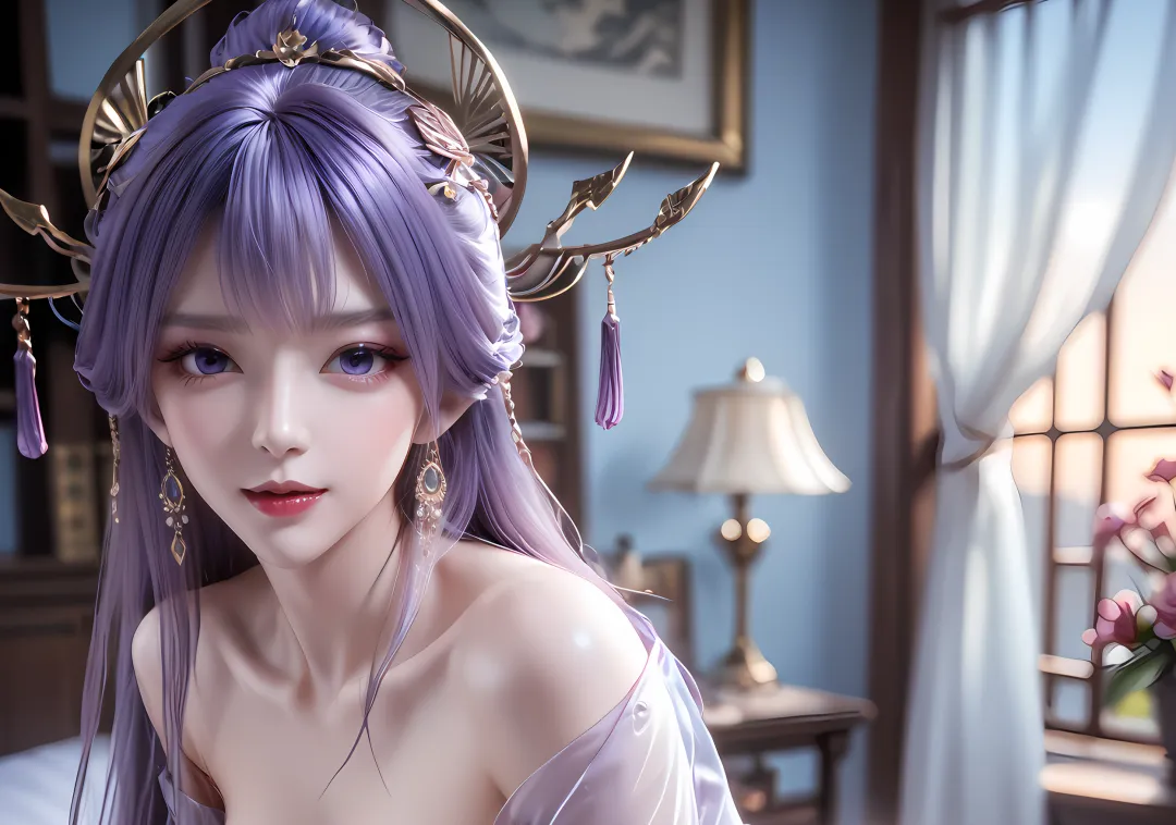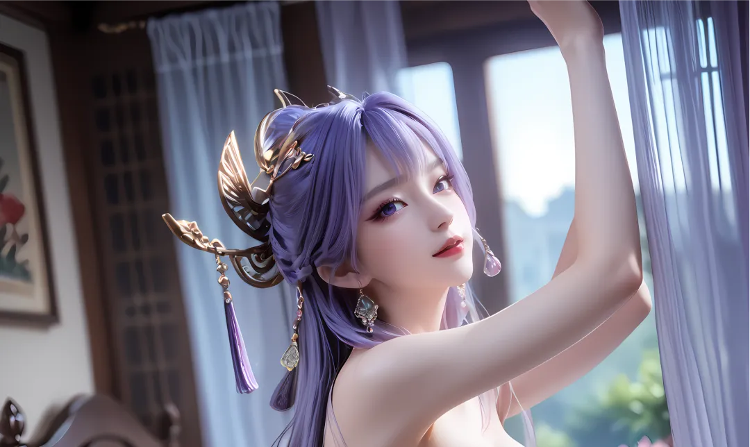 长发依旧是乌黑中泛着紫光,却因魂体状态,多了几分虚幻的光泽,不再像往日那般浓密顺滑,反而有些飘逸散乱,不再盘成精致的发髻,也不再佩戴金色发簪与灵植小花,而是自然垂落至腰际,偶尔会被风吹起,泛着淡淡的紫色魂雾,额前垂落几缕碎发,衬得眉眼愈发柔和,也添了几分破碎感,那份散乱的美,恰恰呼应了她此时漂泊无依、隐忍挣扎的处境。此时的她,美如“风中残烛”,破碎而倔强,隐忍而不甘,藏起了所有的锋芒与野心,在魂奴的桎梏中,默默等待着挣脱的契机。