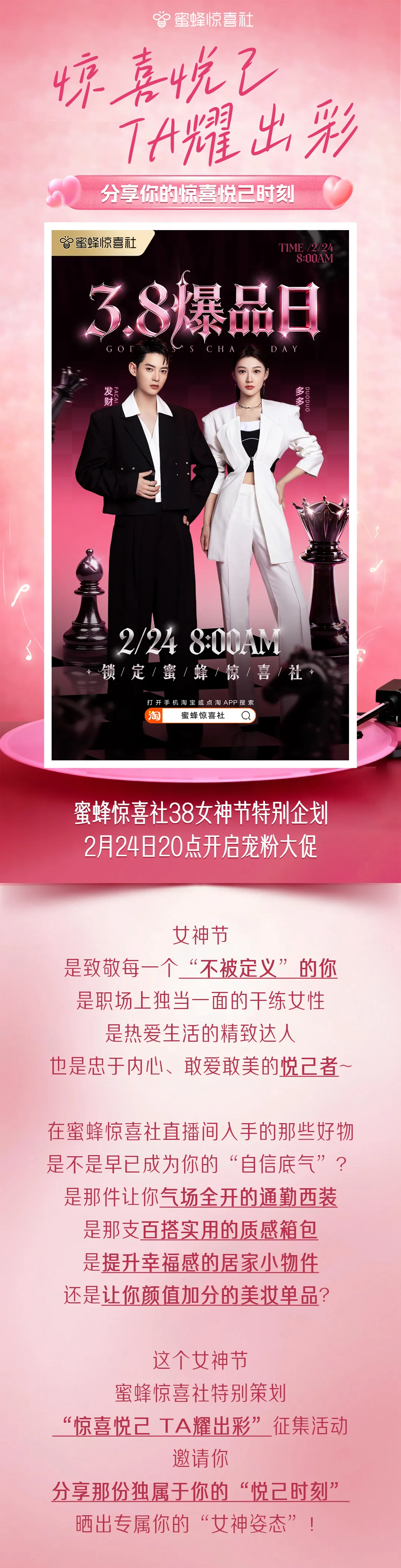 当前位置:首页>美女资讯>@所有人!内含88元红包!蜜蜂38女神节特别企划来了,开年第一波大福利,速戳!