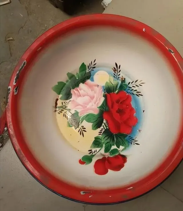 搪瓷盆 , 老辈人叫洋瓷盆 , 结婚标配 , 有人那盆用了三十多年 , 磕掉好几块瓷 , 照用 , 皮实得很~