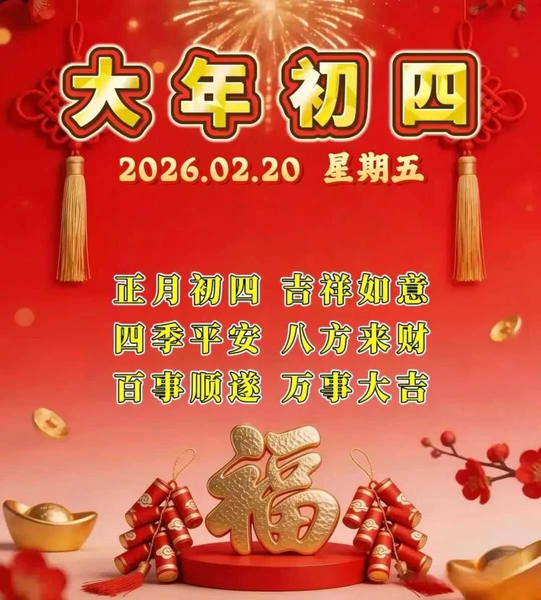 当前位置:首页>美女资讯>2月20日-大年初四祝福图片,正月初四祝福语问候