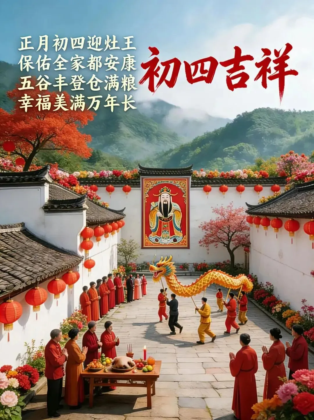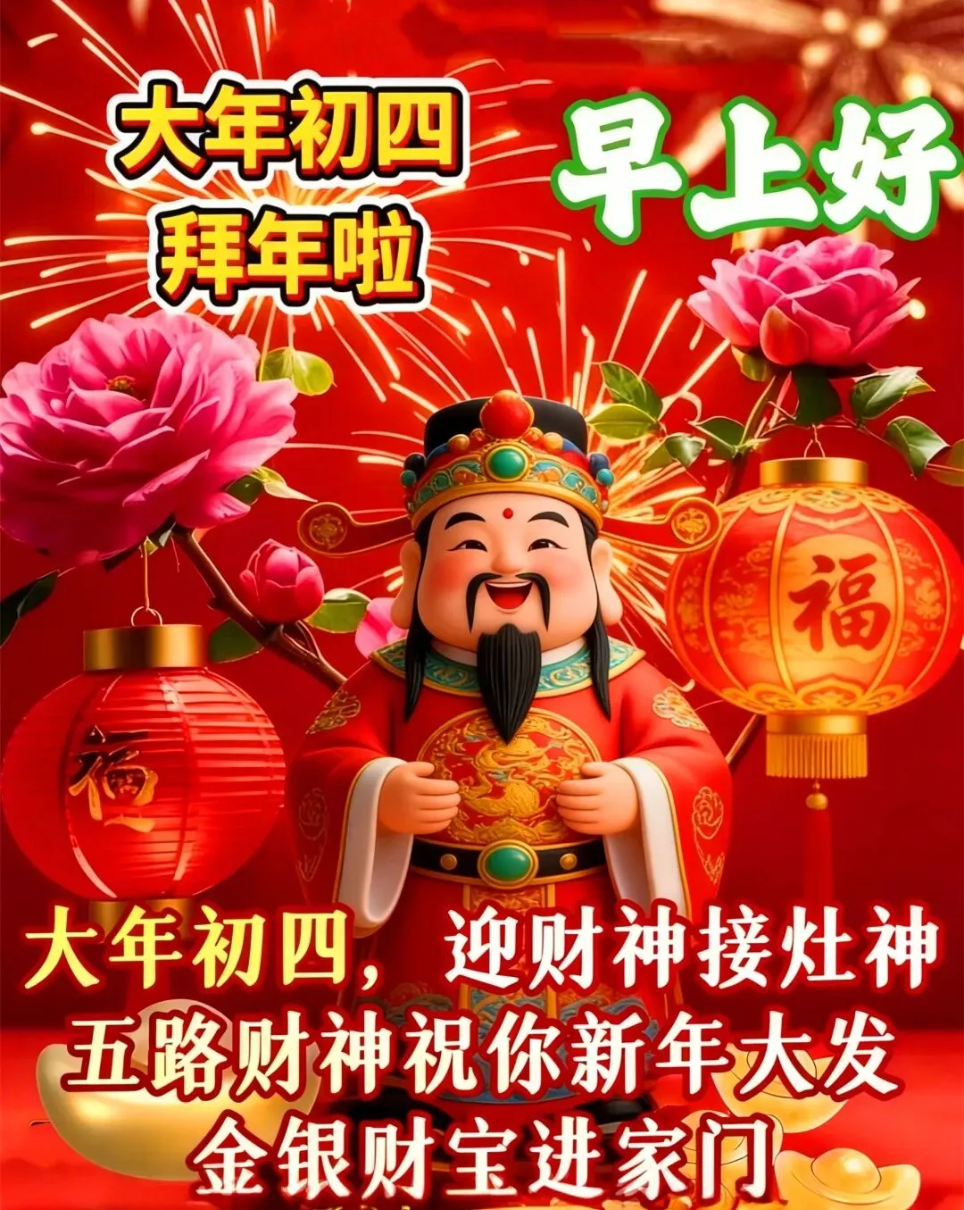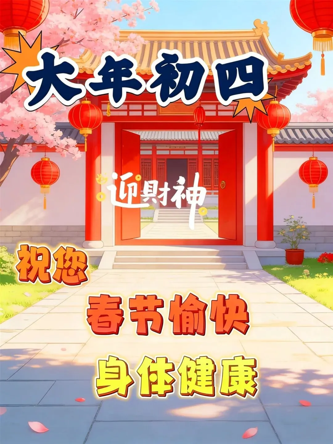 今天是大年初四,拜个年,问声好,福禄寿喜来拜访,其乐融融喜团圆。今天收到这份祝福的人,注定2026年一整年里:福星高照,事事顺心!