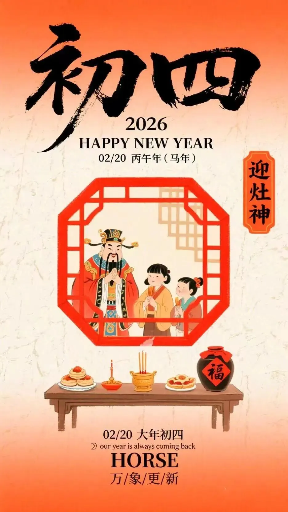 正月初四,接神启瑞 🐎!灶神赐你健康福,