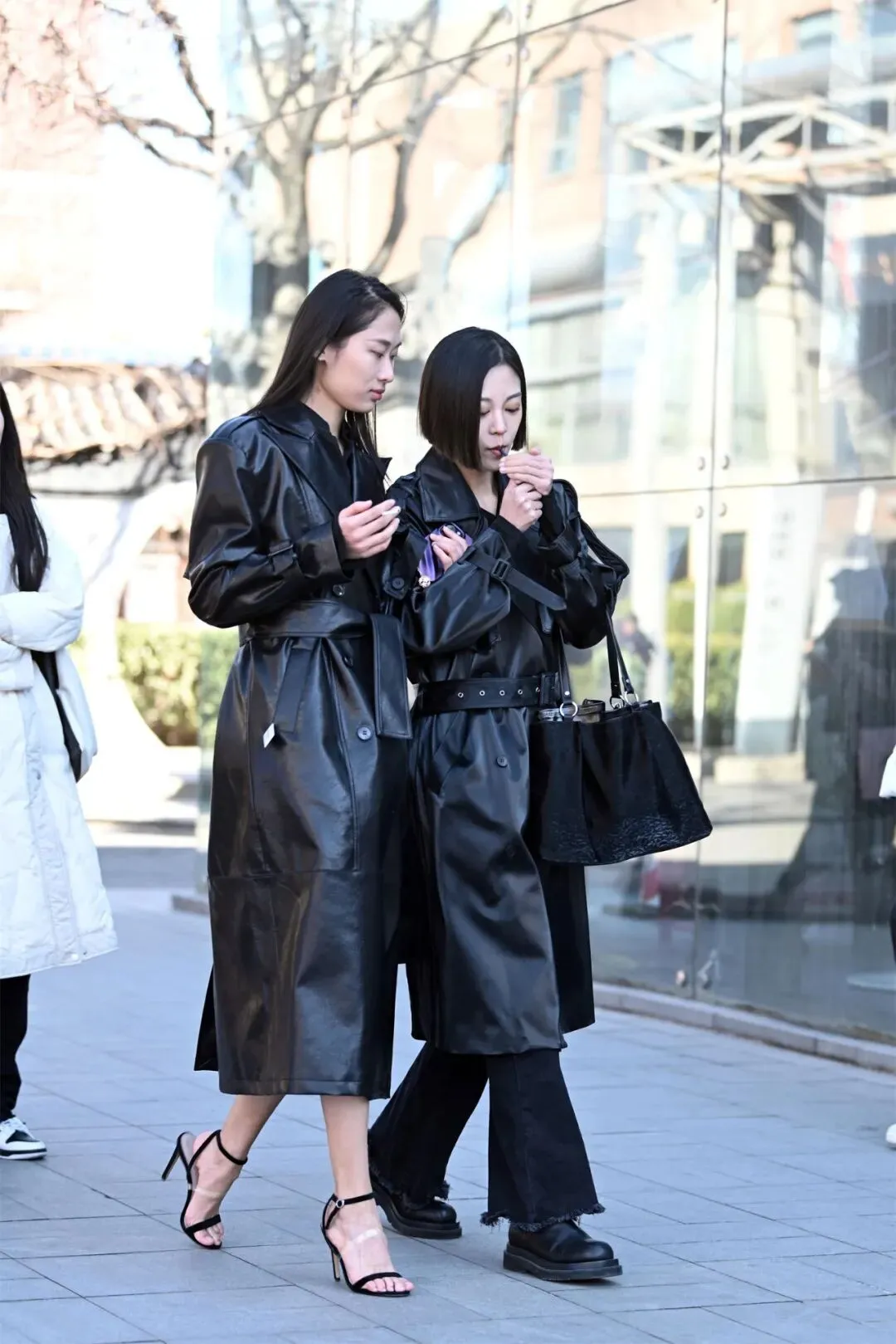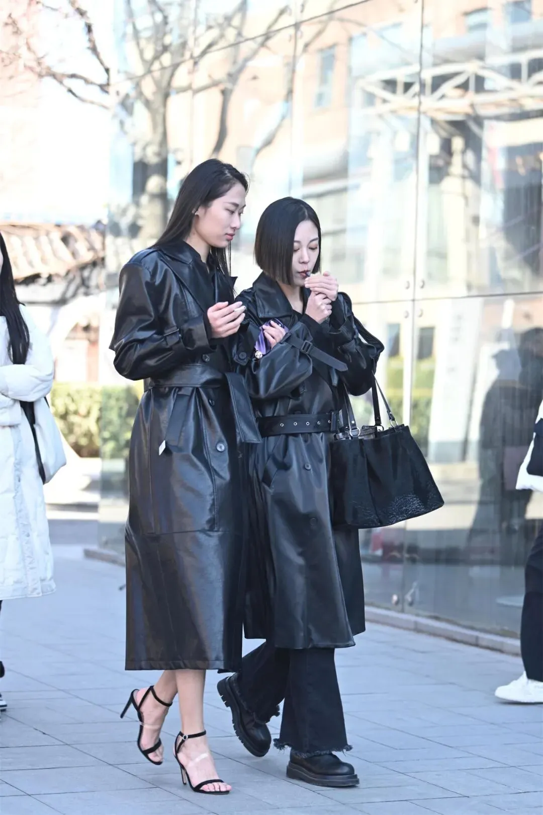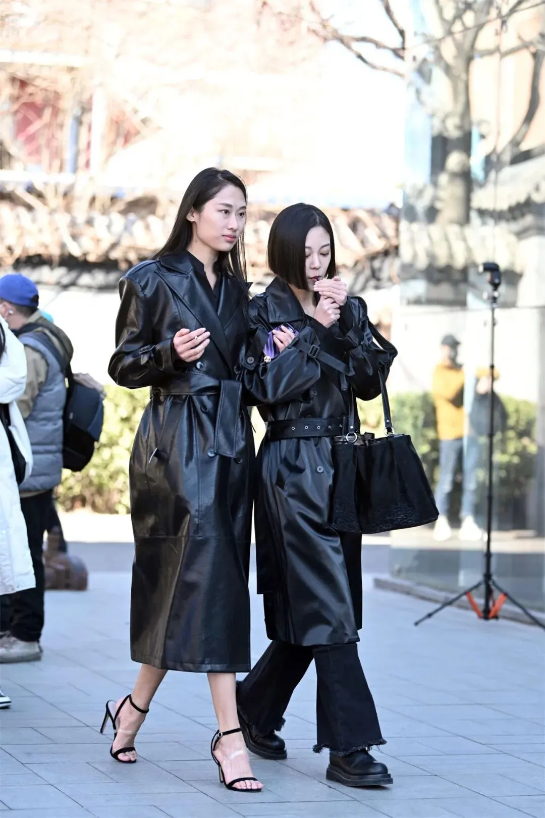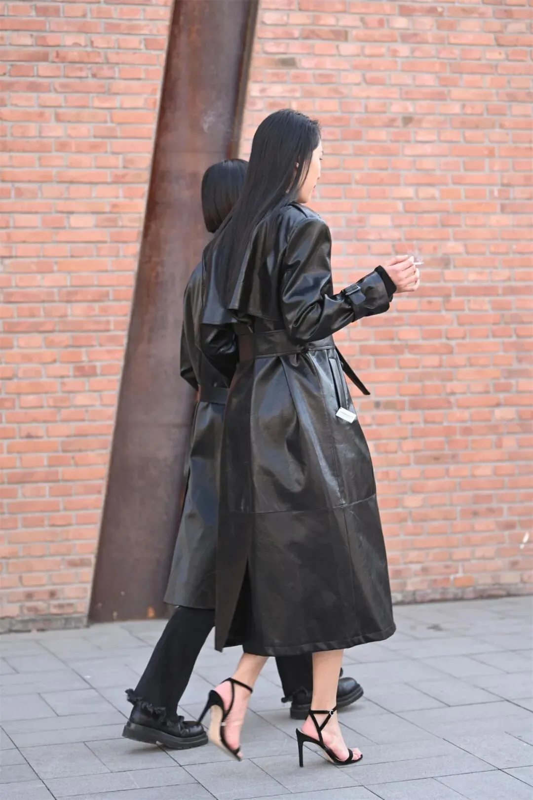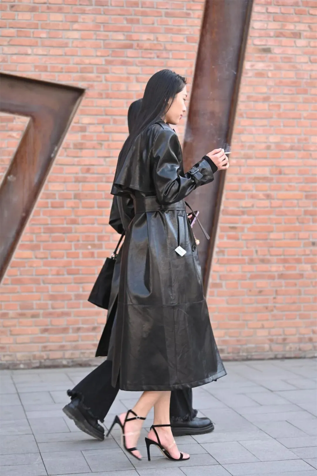 黑色一字带细高跟凉鞋与黑色皮大衣的搭配,是时尚界永恒的经典组合之一。这种搭配不仅能够凸显女性的优雅与力量感,还能在视觉上拉长身形,塑造出令人过目难忘的气场。无论是T台模特还是日常穿搭,这一组合都能轻松驾驭各种场合,成为焦点。