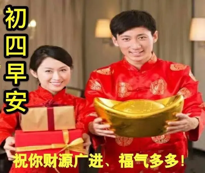 今天是初四了!祝福朋友们新春佳节,幸福快乐想啥来啥!恭喜发财、身体健康、财源滚滚、心想事成、万事如意、新年大吉大利!