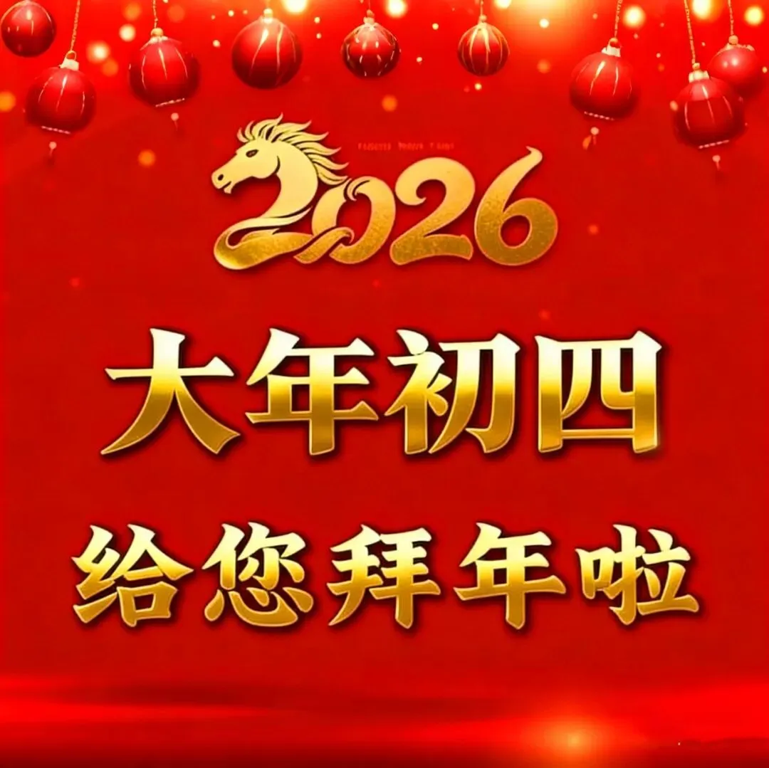 今天农历正月初四,大年初四来拜年,愿您2026马年:事业一路繁花,家庭温馨和睦,四季平安,五福临门!