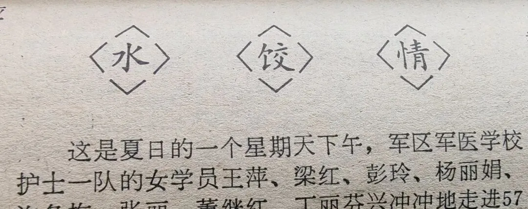 这是夏日的一个星期天下午,军区军医学校护士队一队的女学员王平、梁红、彭玲、杨丽娟、徐冬梅、张丽、董继红、丁丽芬,兴冲冲地走进57医院。她们手提面粉、猪肉、青菜和佐料,径直走进一间宿舍就忙开了:有的和面,有的拌馅儿,准备包水饺。