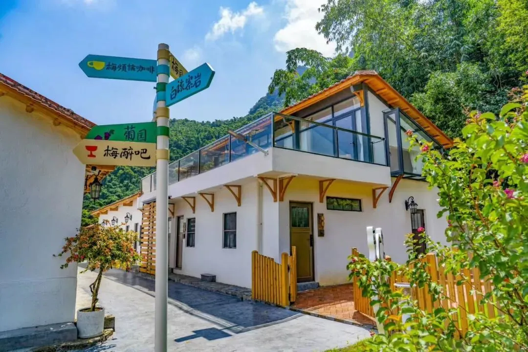 梅子寨村坐落于山间谷地,曾因青壮年外流、房屋闲置陷入沉寂。2024年,在省委办公厅"百千万工程"驻英德工作队牵头下,共同打造"以农民为中心"的共富项目。将36间旧瓦房改造为"梅烦恼"咖啡厅、"梅间小筑"民宿等特色空间,形成"一房一特色"的乡村微度假综合体。这些充满乡土创意的名字均由村民集思广益而来,既保留了文化记忆,又延伸了文旅产业链。