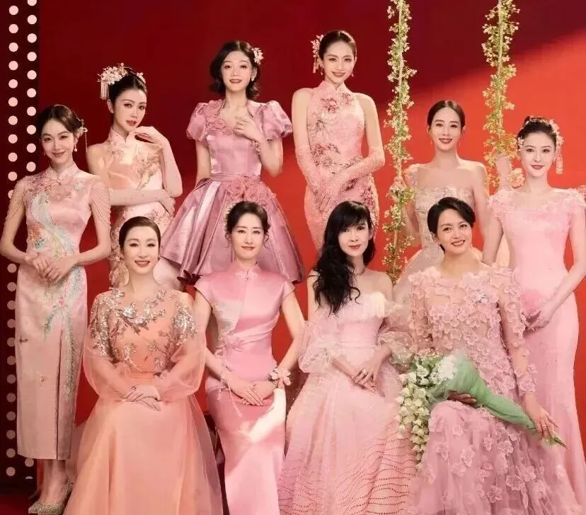 当周慧敏、刘敏涛、秦海璐等十位女星身着粉裙,站在满目翠绿的舞美中联袂献唱时。