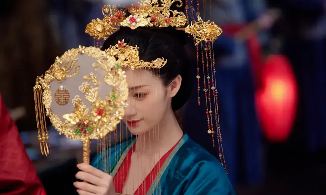剧中大婚之时使用的团扇也叫“宫扇”“纨扇”“合欢扇”,因其形似圆月,且宫中多用之,故有此称,有“团圆美好”的寓意。
