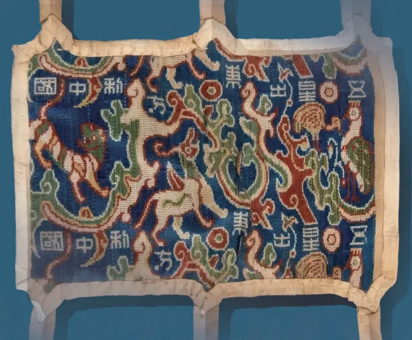 “五星出东方利中国”织锦护臂(膊),被誉为国家一级文物,也是中国首批禁止出国(境)展览的宝贵遗产。