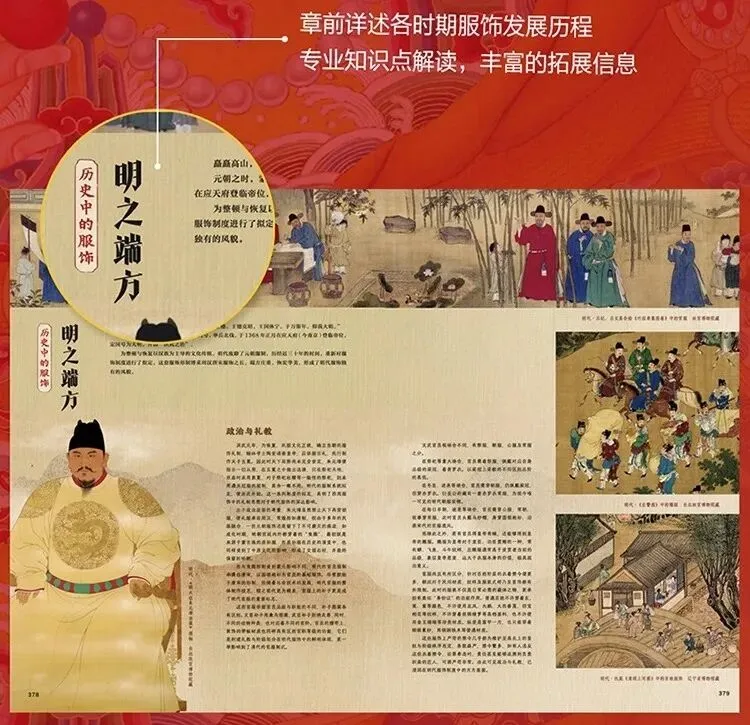 超长的时间跨度,在翻书的过程中1秒穿越古今,轻轻松松溯源华夏服饰变迁史,解锁7600年以来的“穿衣密码”,简直就是一本“穿”在身上的中华文明史