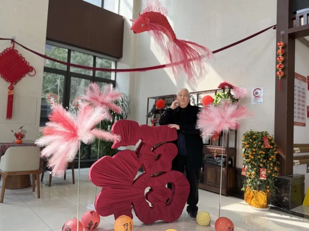 手持锦鲤挂件的长者,笑意爽朗,
