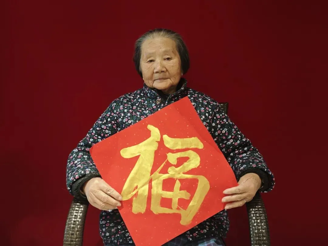 还有的长者手捧小巧福字,