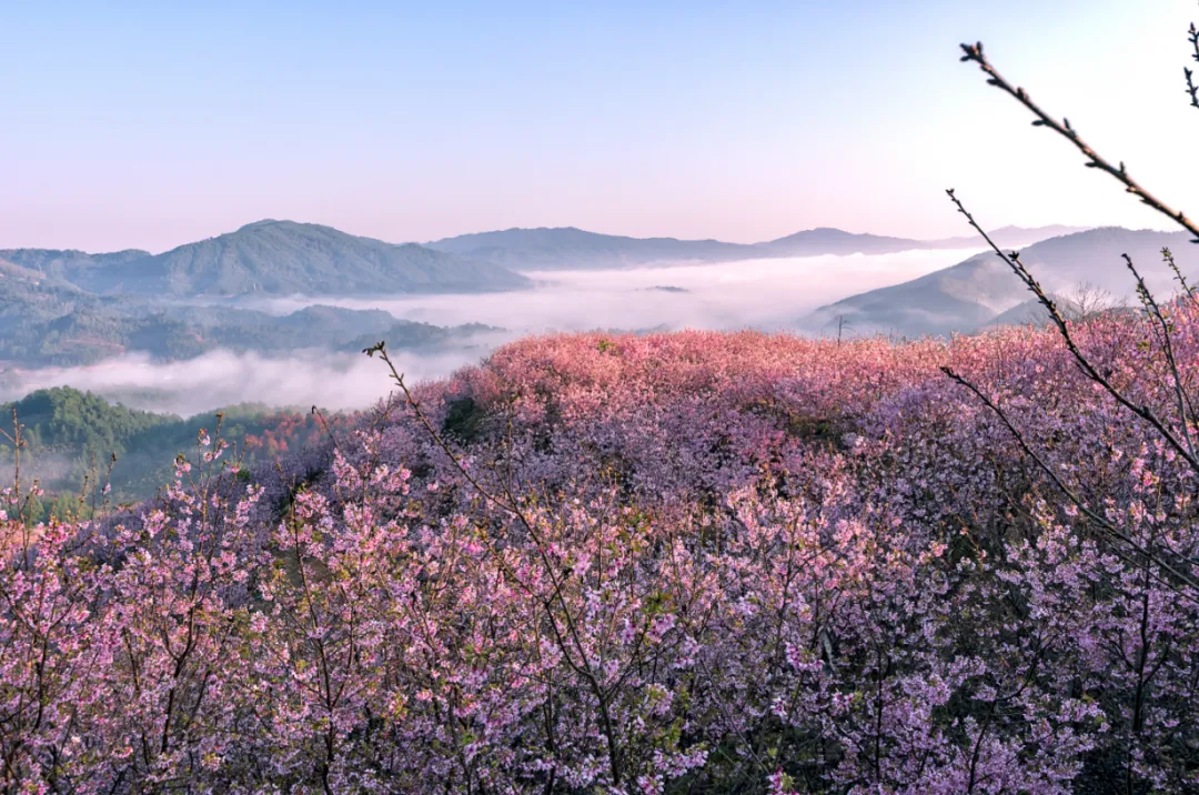 13:30游览清流【赖坊樱花园】。赖坊姚家樱花基地面积达2000亩,是由台商独资企业东方龙(清流)樱花生态科技有限公司投资9000万元,全力打造的赏樱基地,种植樱花苗木23万株,品种有:红粉佳人、香水樱(初美人)、红粉吉野櫻,阳明山樱、大岛樱、八重樱、牡丹樱、普贤象樱、垂枝樱、绯寒樱、关山樱、太田樱等17个优良品种。